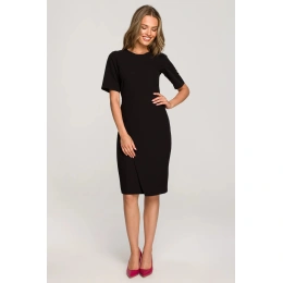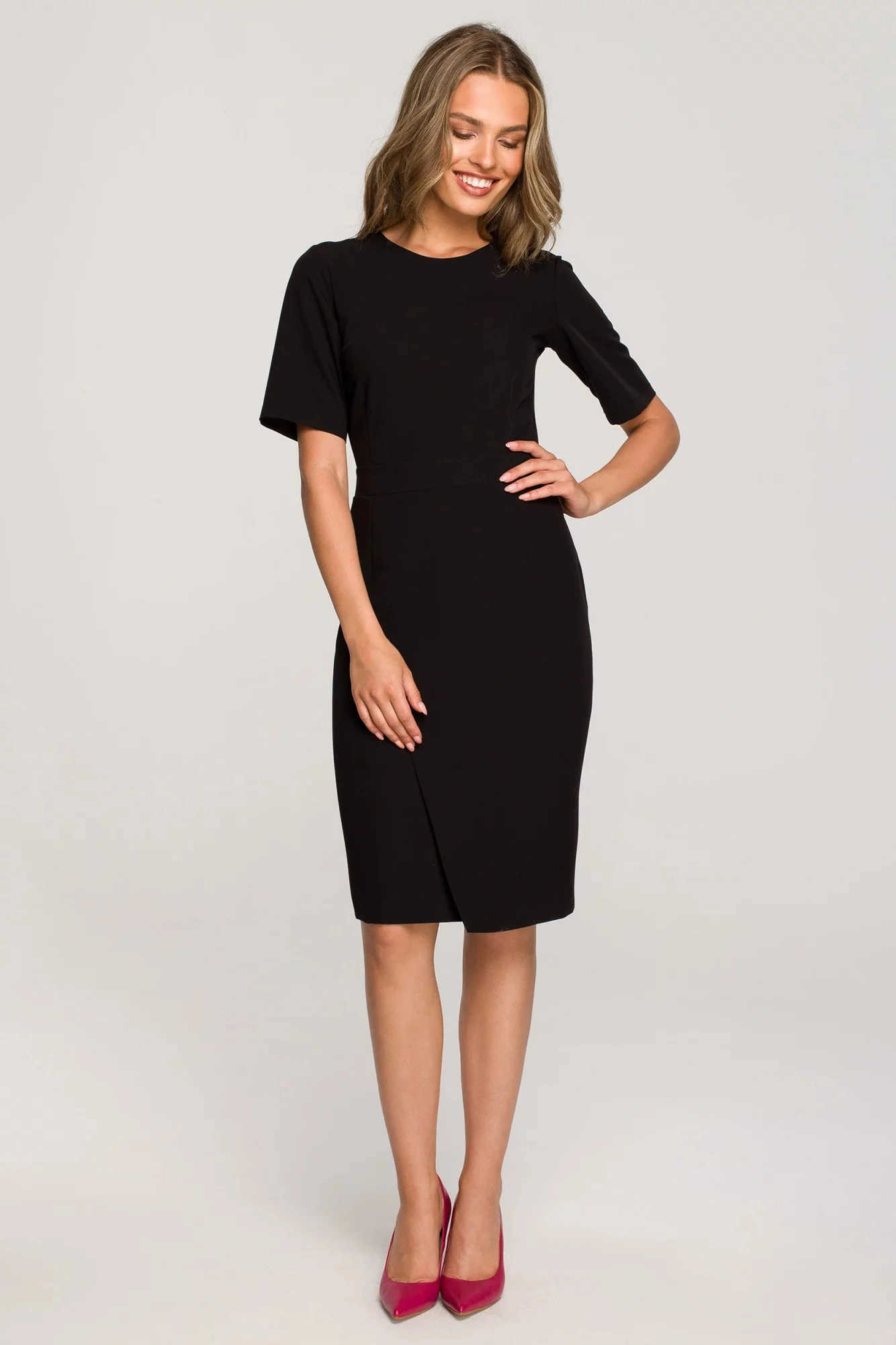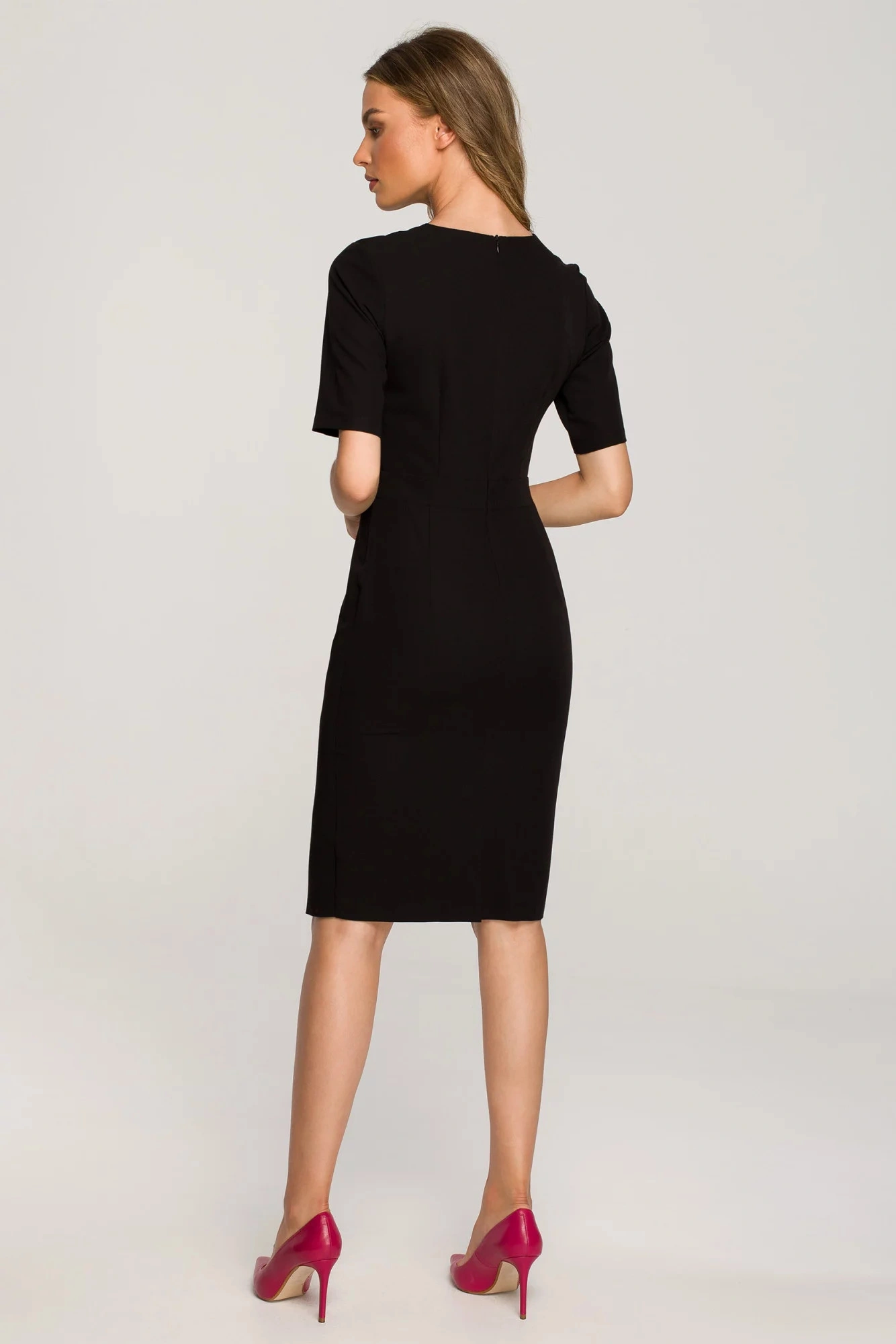 Klíčem k úspěchu je jednoduchost. Jednoduché šaty s dvojitou zavinovací přední částí ji mají.