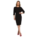 Jednoduchá tkanina a krásný tvar, který lichotí postavě - v pase stažené a s netopýřími rukávy - to jsou šaty, které si zamilujete.