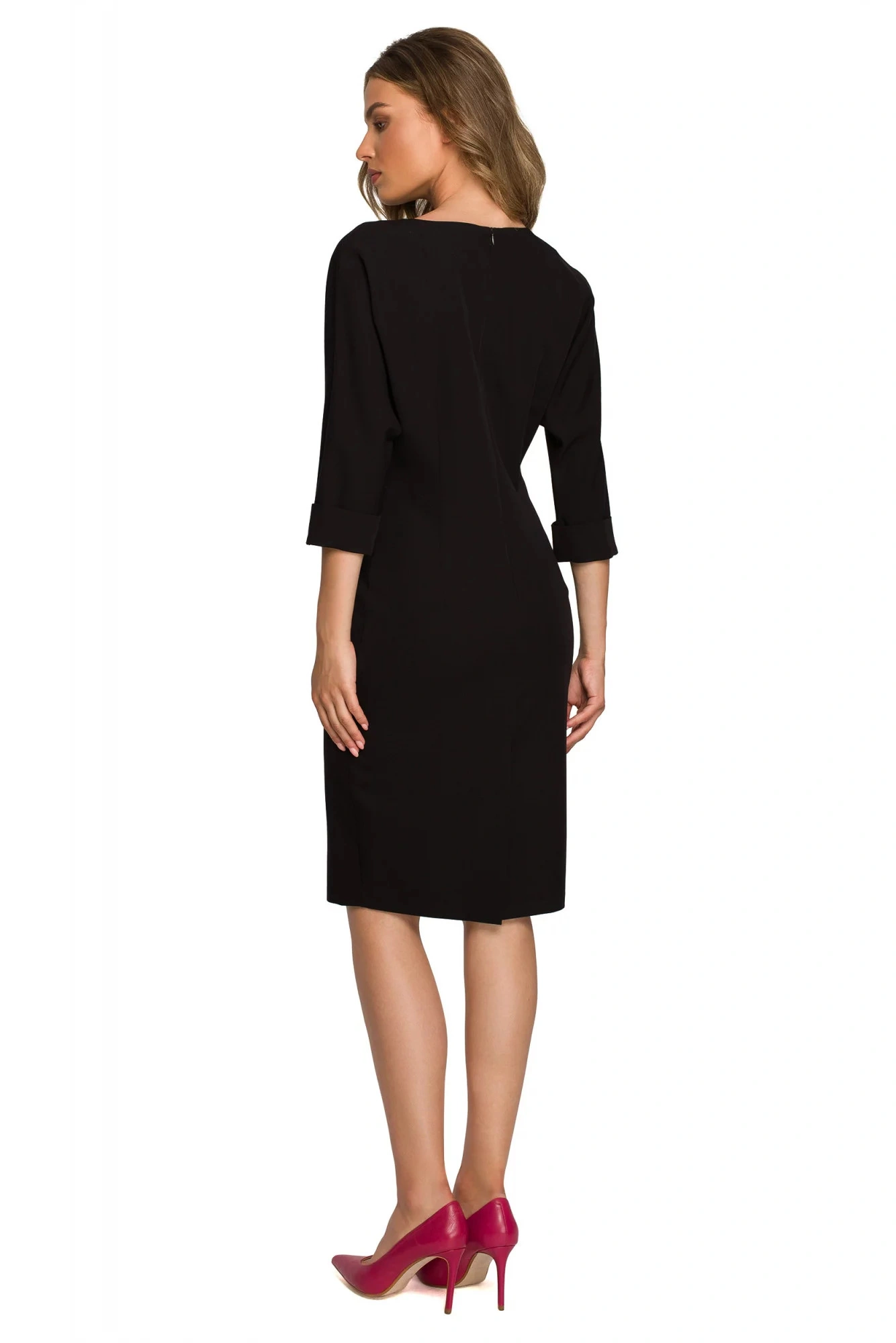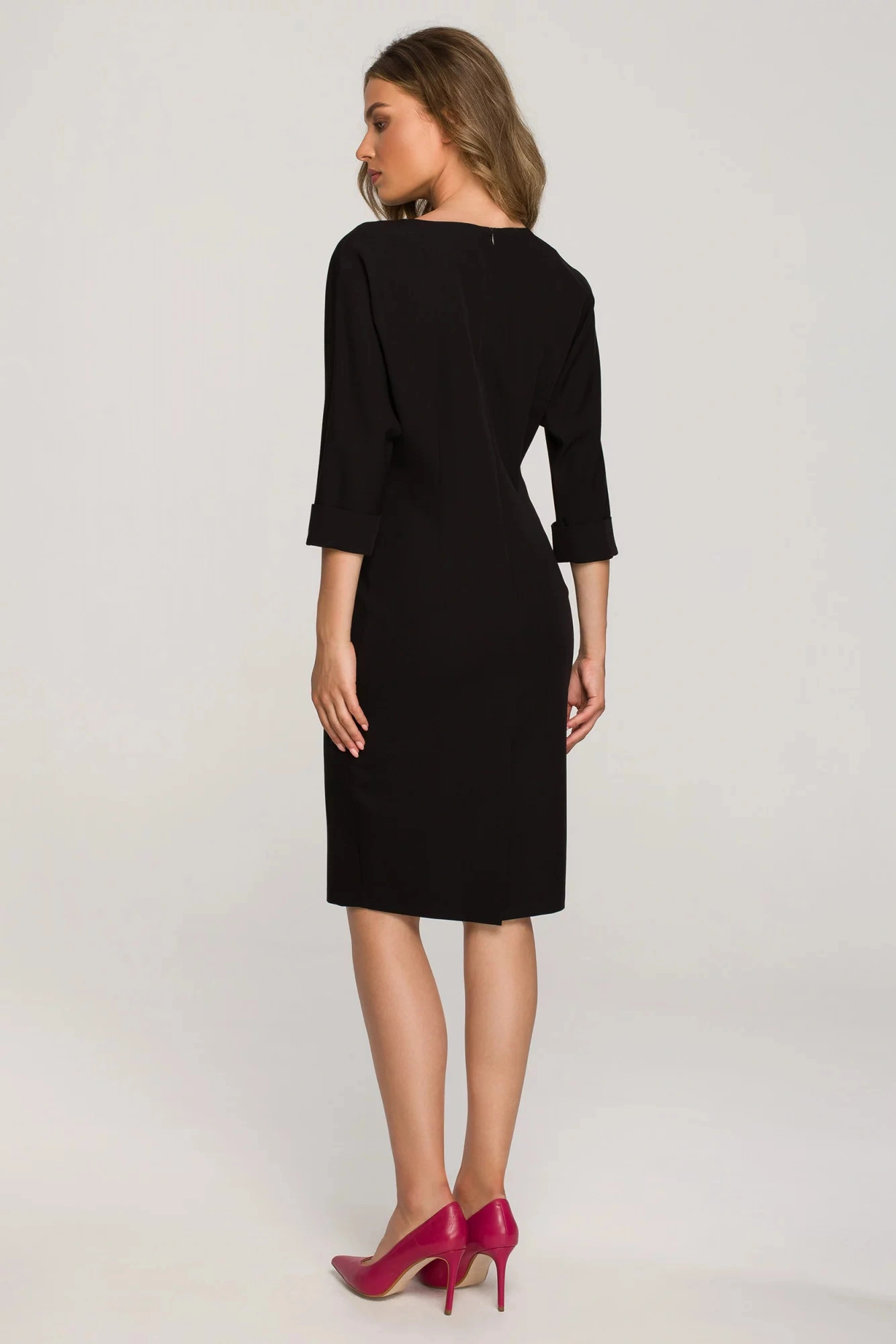 Jednoduchá tkanina a krásný tvar, který lichotí postavě - v pase stažené a s netopýřími rukávy - to jsou šaty, které si zamilujete.