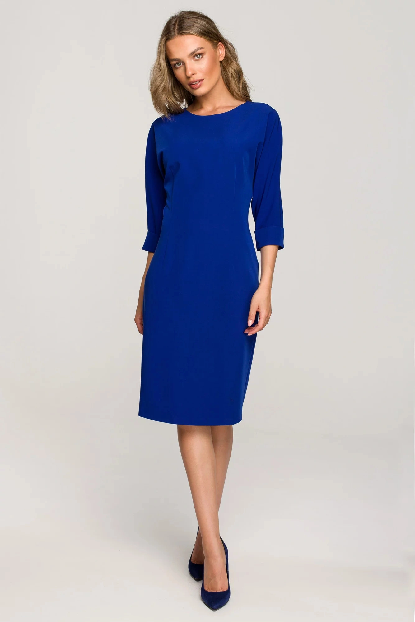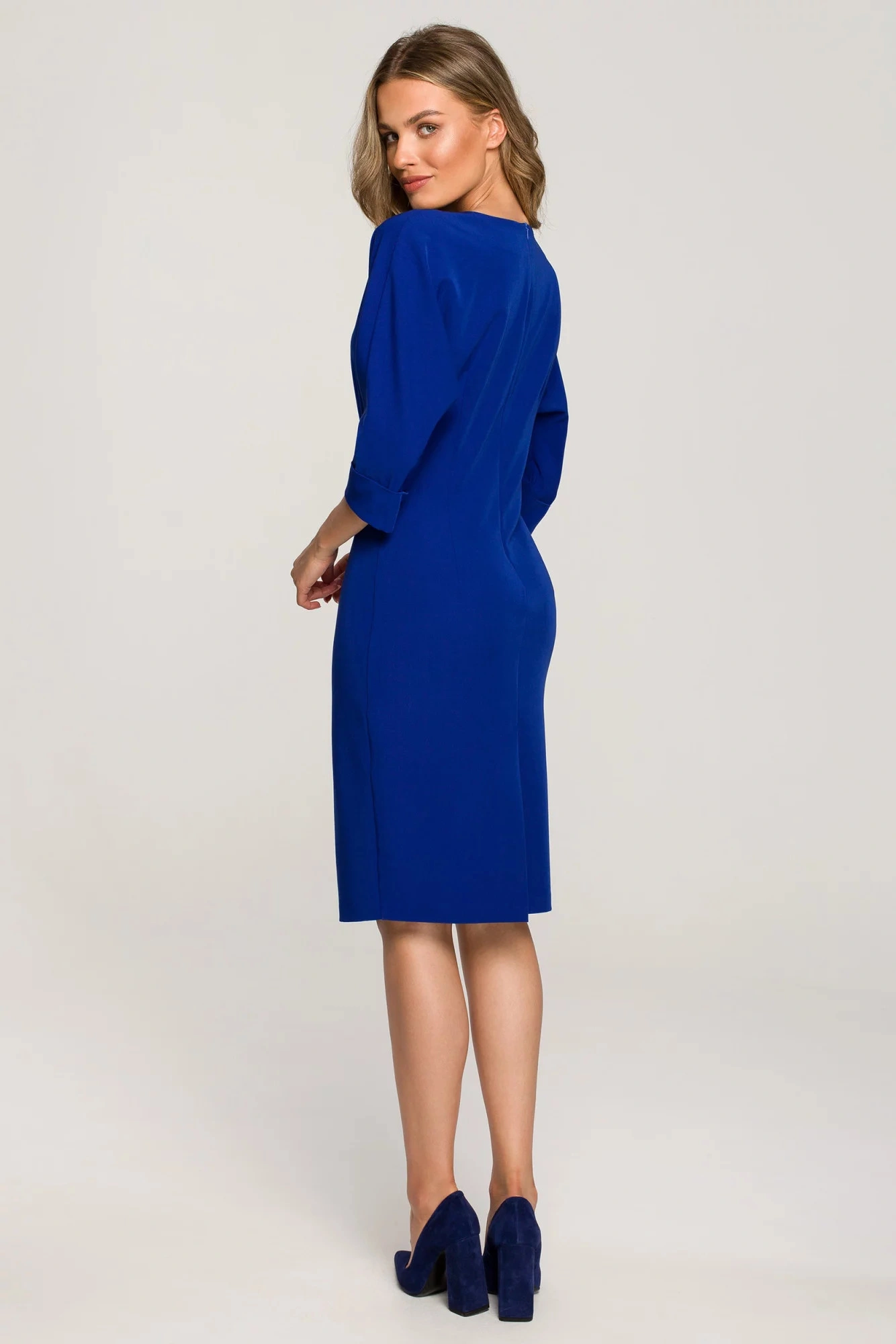 Jednoduchá tkanina a krásný tvar, který lichotí postavě - v pase stažené a s netopýřími rukávy - to jsou šaty, které si zamilujete.