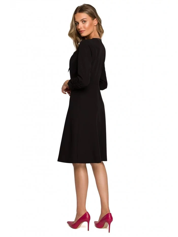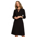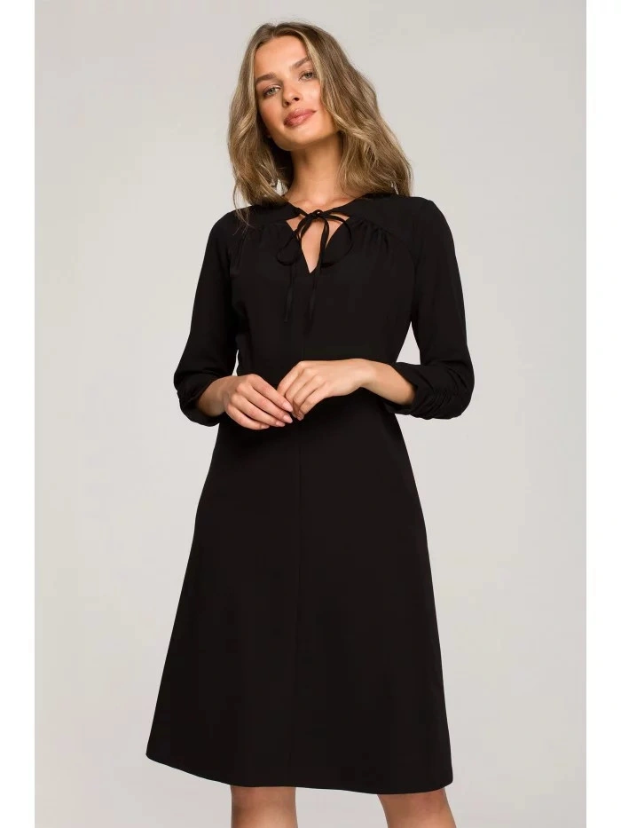 Elegantní šaty s lichotivým střihem a zavazováním za krkem jistě udělají dojem. PODROBNOSTI O PRODUKTU: šaty z tkané látky s ozdobným výstřihem ve tvaru písmene V a zavazováním dlouhé rukávy s nabíraným lemem délka nad kolena bez podšívky naše modelka měří 174 cm a nosí velikost S