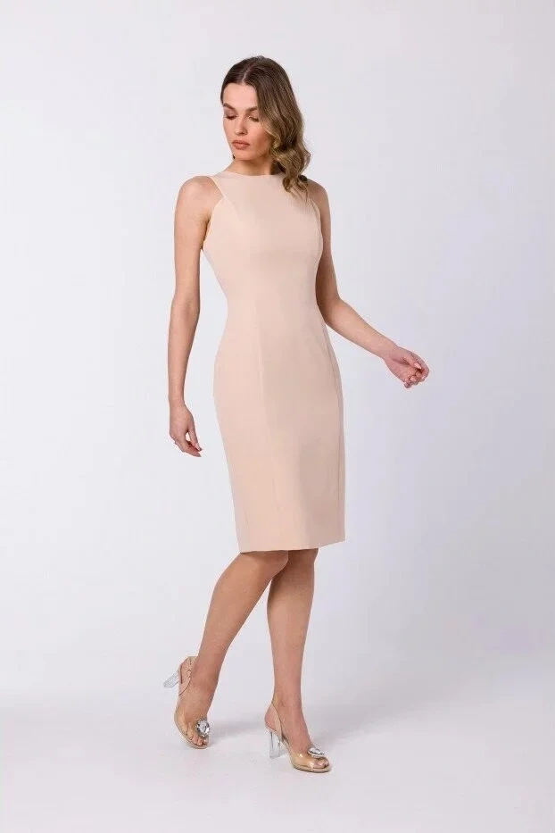 Pouzdrové šaty bez rukávů s geometrickým nádechem. PODROBNOSTI O PRODUKTU: tkaná látka pouzdrové šaty bez rukávů geometrický design se svislým prošíváním skrytý zip na zádech délka ke kolenům bez podšívky naše modelka měří 174 cm a nosí velikost S