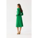 65% polyester 30% viskóza 5% elastan DETAILY PRODUKTU: šaty z tkané látky s ozdobnými svislými záševky v přední části dlouhé rukávy spona pásek z umělé kůže součástí balení délka pod kolena a šikmý střih sukně bez podšívky skrytý zip na zádech naše modelka měří 174 cm a nosí velikost S navrženo a vyrobeno v Polsku