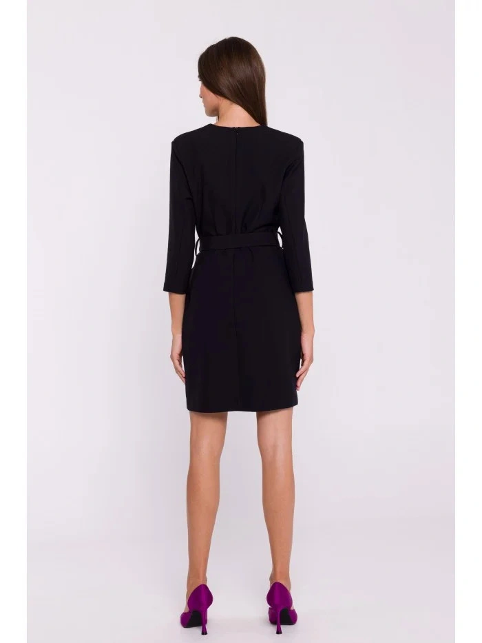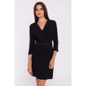 DETAILY VÝROBKU: tkané šaty s výstřihem do V ozdobné prošívání vpředu a kapsy s klopou regular fit délka nad kolena pásek s přezkou skrytý zip na zádech podšívka naše modelka měří 174 cm a nosí velikost S navrženo a vyrobeno v Polsku