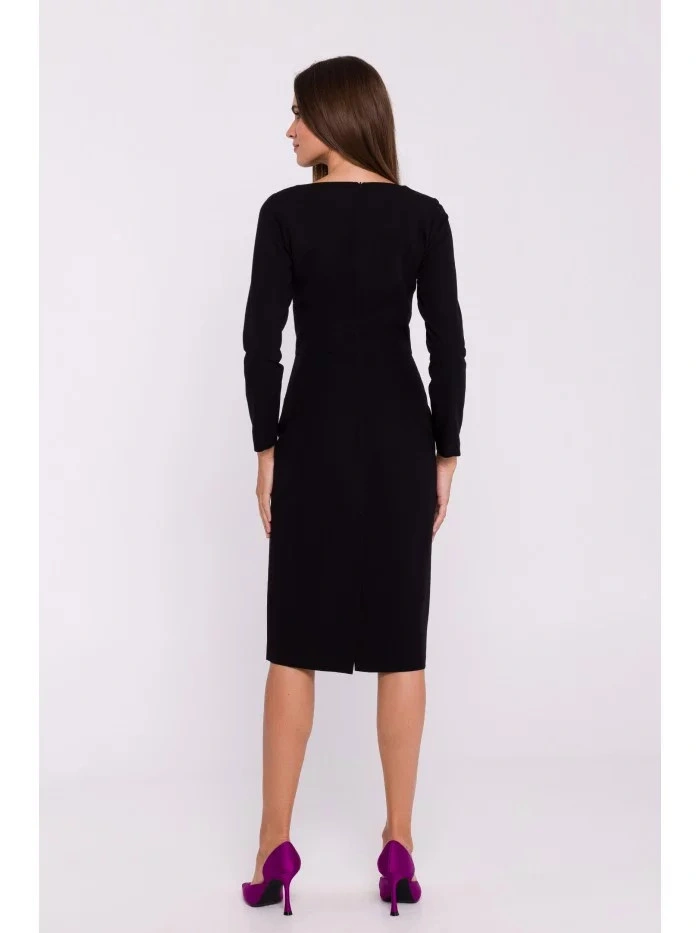 PODROBNOSTI O PRODUKTU: tkaná látka pouzdrové šaty s asymetrickým výstřihem dlouhé rukávy délka pod kolena zadní díl skrytý zip bez podšívky naše modelka měří 174 cm a nosí velikost S navrženo a vyrobeno v Polsku