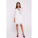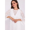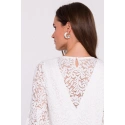 Tkanina uvnitř, krajková vnější vrstva, dvouvrstvé šaty, volánové rukávy, délka nad kolena, přetahují se přes hlavu, zapínání na knoflíky vzadu, naše modelka měří 174 cm a nosí velikost S, navrženo a vyrobeno v Polsku