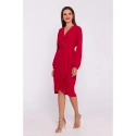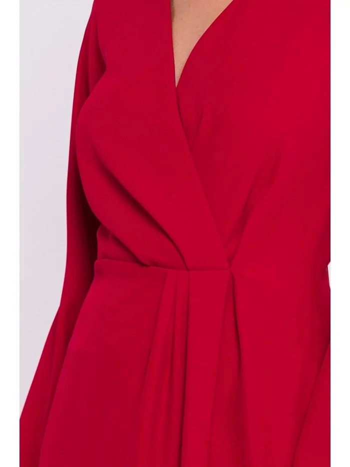 DETAILY PRODUKTU: pouzdrové šaty z tkané látky s umělým zavinovacím vzorem ozdobné záhyby v přední části široké rukávy zakončené manžetami délka pod kolena skrytý boční zip bez podšívky naše modelka měří 174 cm a nosí velikost S navrženo a vyrobeno v Polsku