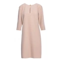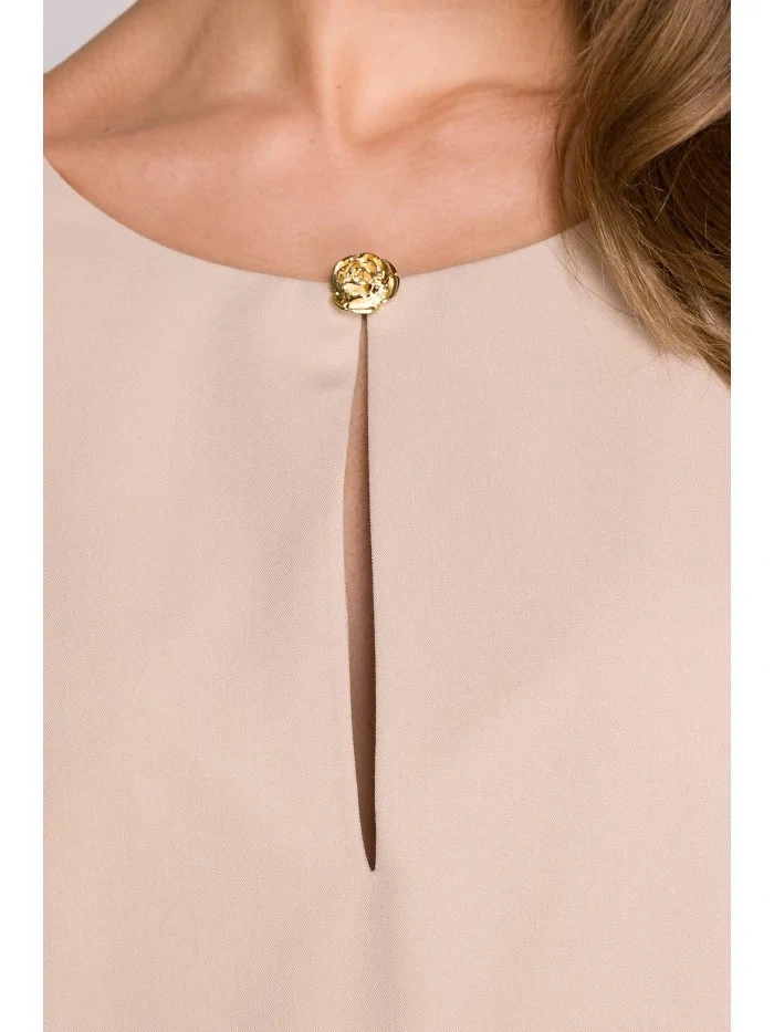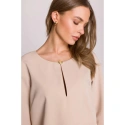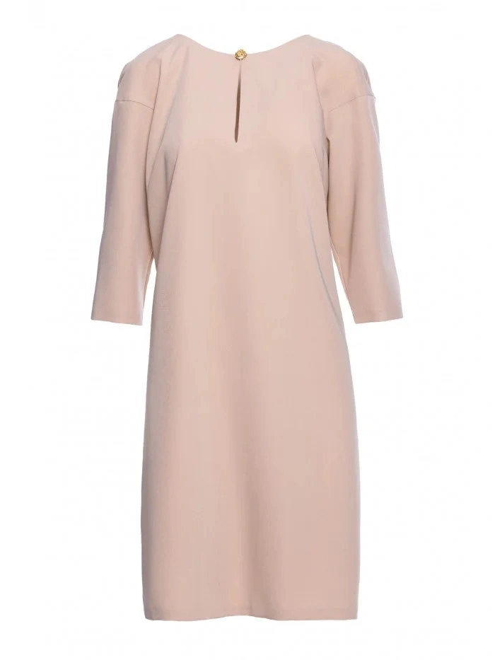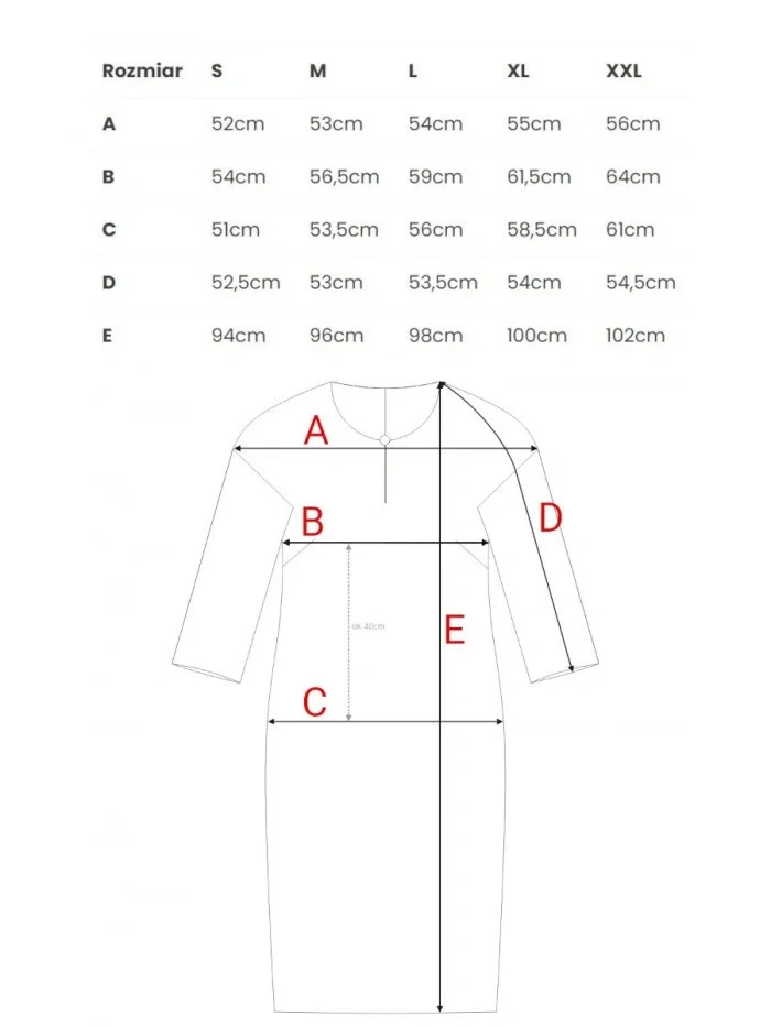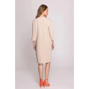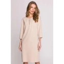 DETAILY PRODUKTU: tkaný materiál uvolněný střih šaty s délkou nad kolena tříčtvrteční rukávy dělený výstřih s ozdobným knoflíkem skrytý zip vzadu záhyb na zádech bez podšívky naše modelka je vysoká 175 cm a nosí velikost S navrženo a vyrobeno v Polsku