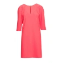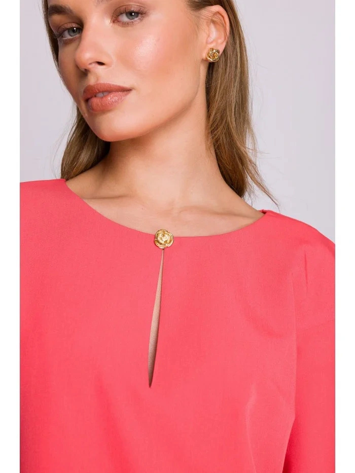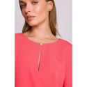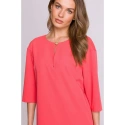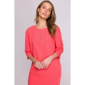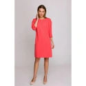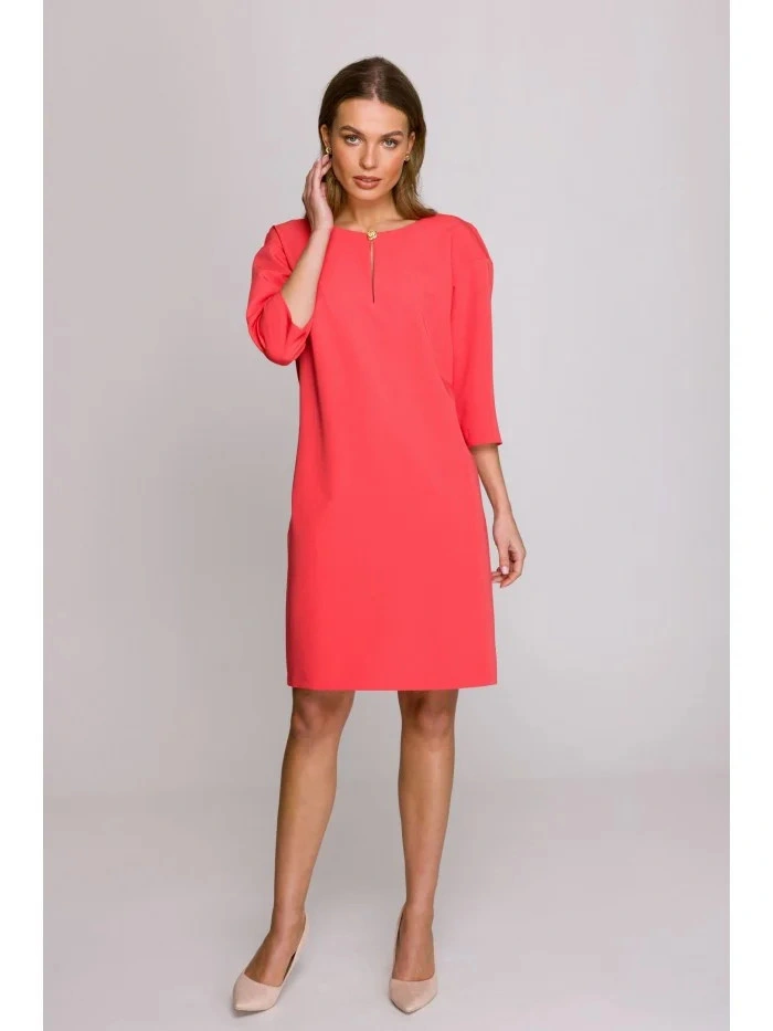DETAILY PRODUKTU: tkaný materiál uvolněný střih šaty s délkou nad kolena tříčtvrteční rukávy dělený výstřih s ozdobným knoflíkem skrytý zip vzadu záhyb na zádech bez podšívky naše modelka je vysoká 175 cm a nosí velikost S navrženo a vyrobeno v Polsku