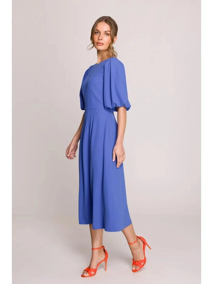 DETAILY PRODUKTU: tkaný materiál přiléhavý střih midi šaty krátké pouzdrové rukávy zaoblený výstřih vpředu výstřih do V vzadu skrytý zip na zádech částečně podšité naše modelka měří 175 cm a nosí velikost S navrženo a vyrobeno v Polsku