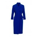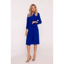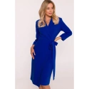 PODROBNOSTI O PRODUKTU Výstřih: zavinovací výstřih do V Límec: šálový límec Rukávy: 7/8 délky s ohrnutými manžetami Pas: zvýrazněný páskem Zapínání: zavazování v pase Kapsy: žádné Podšívka: částečně podšitá Model: S415 Navrženo a vyrobeno v Polsku Modelka je vysoká 174 cm a nosí velikost S STYL A STŘIH Styl: zavinovací šaty Tvar: vypasovaný vršek, rovná sukně s mírným uvolněním Délka: pod kolena