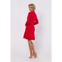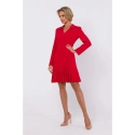 INFORMACE O PRODUKTU: pouzdrové šaty z tkané látky s límečkem a plisovaným spodním lemem výstřih do V a falešný zábal vpředu ozdobné knoflíky vpředu dlouhé rukávy délka nad kolena skrytý boční zip bez podšívky naše modelka je vysoká 171 cm a nosí velikost S Navrženo a vyrobeno v Polsku