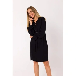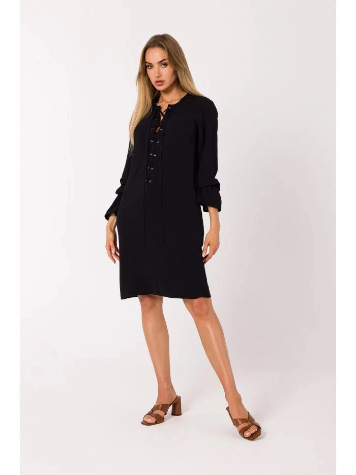 Tyto mini šaty mají hluboký šněrovací výstřih. INFORMACE O PRODUKTU: šaty z tkané látky se šněrováním vpředu dlouhé rukávy zakončené elastickými volánovými lemy délka nad kolena naše modelka měří 171 cm a nosí velikost S
