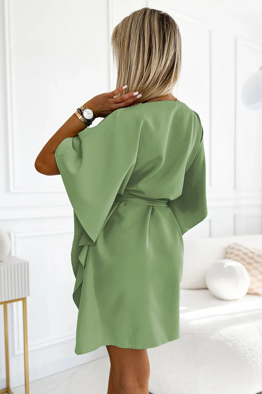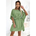 Šaty SOFIA Butterfly s páskem - olivově zelené. Z látky příjemné na dotek. značka numoco. polská výroba.