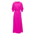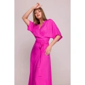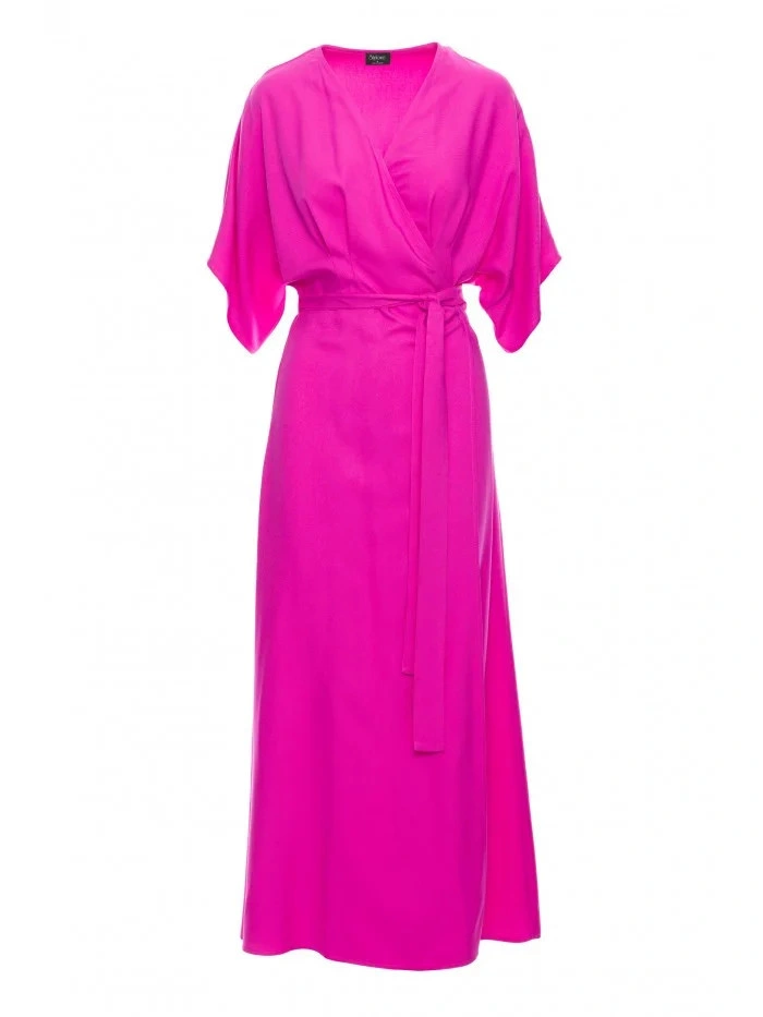 materiál: lehká viskóza Povrchová úprava: hladká, saténová PODROBNOSTI O PRODUKTU Pas: klasický střih s páskem na zavázání, který zvýrazňuje pas Zapínání: zavazování v pase, zavinovací střih Rukávy: volné, délka po lokty Kapsy: žádné Model: S406 Navrženo a vyrobeno v Polsku Modelka je vysoká 170 cm a má na sobě velikost S STYL A STŘIH Střih: zavinovací střih Tvar: vypasovaný v pase, splývavý podél těla Délka: maxi délka