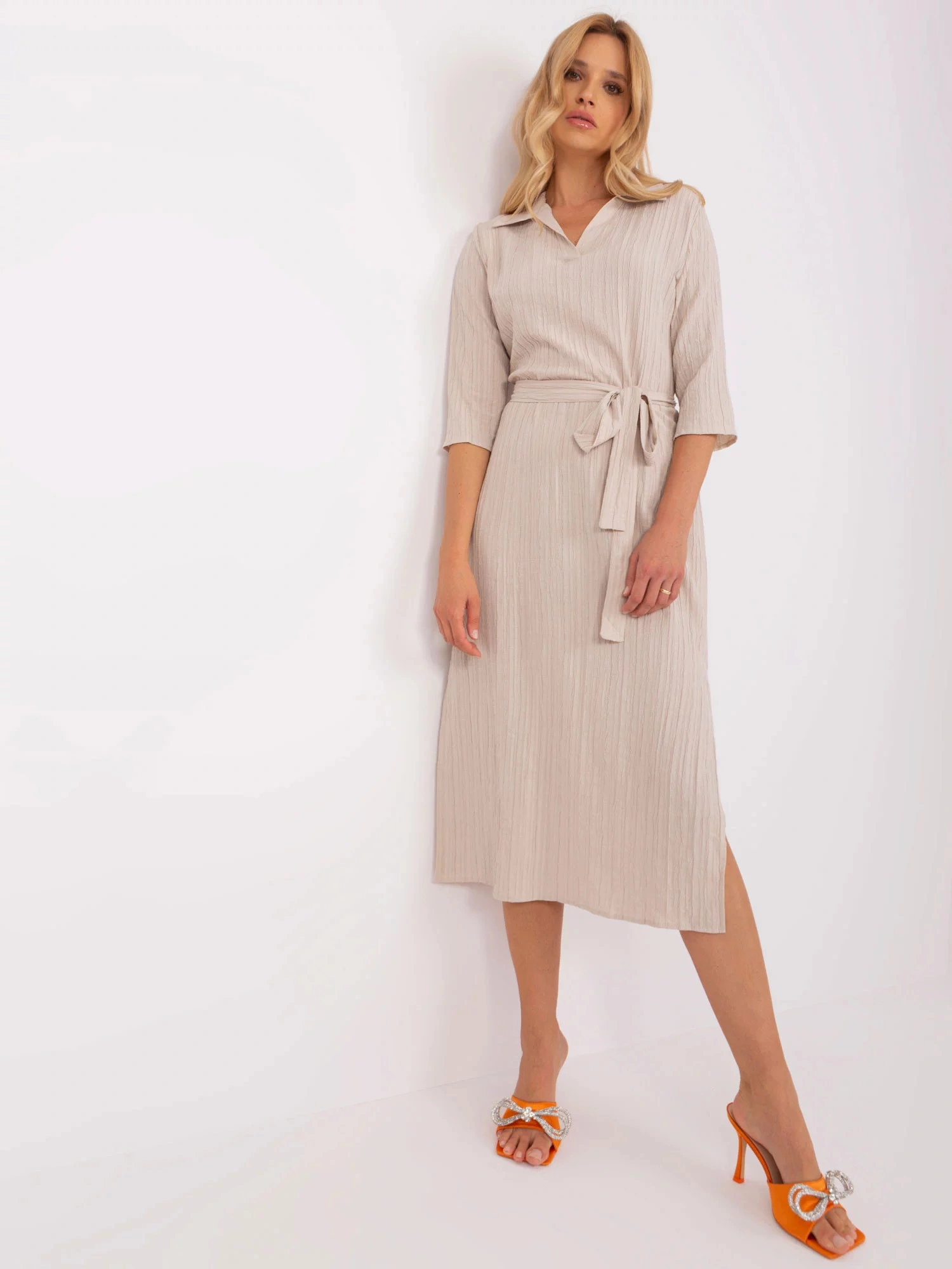 Světle béžové ležérní šaty s rozparky .
