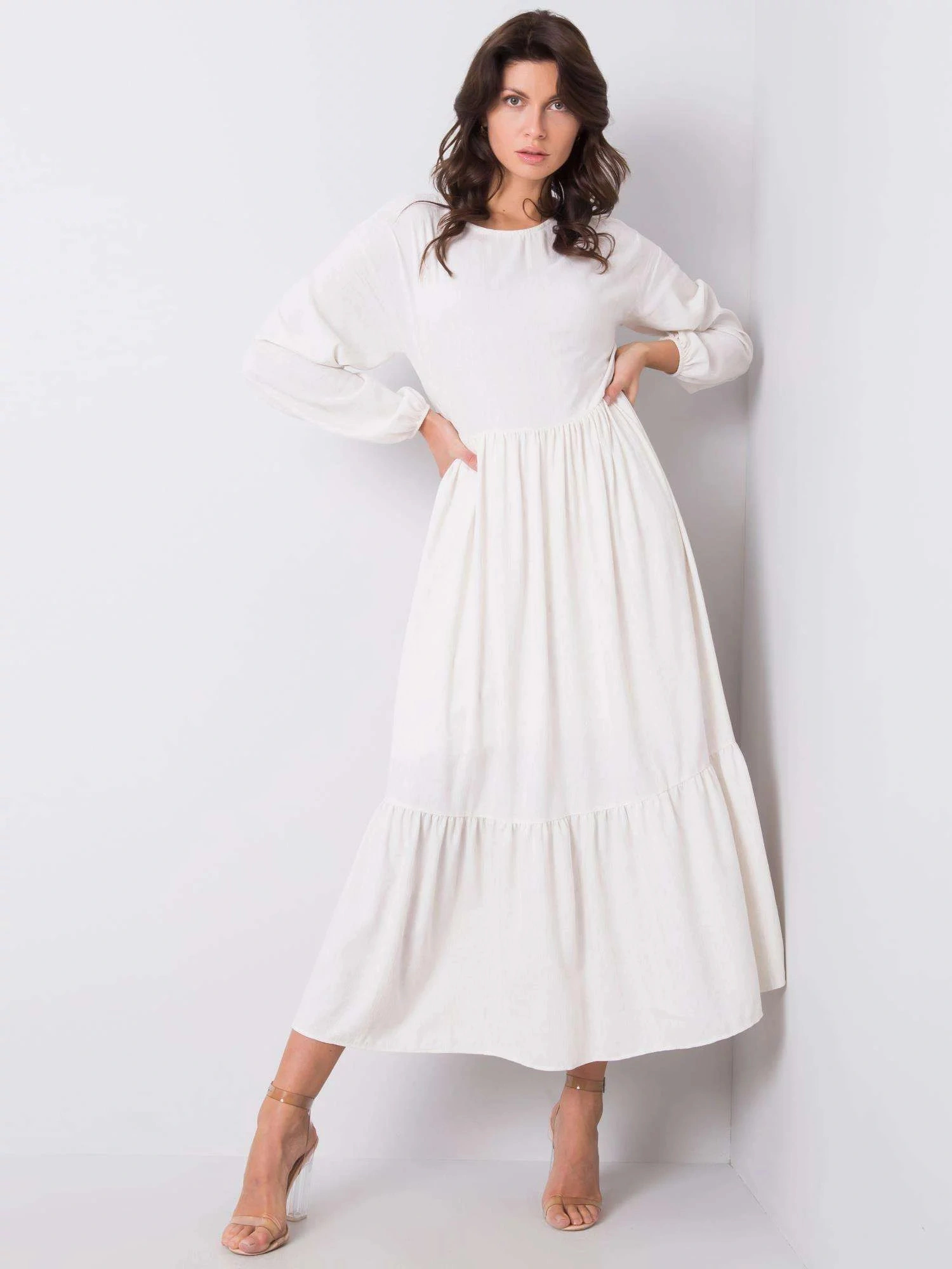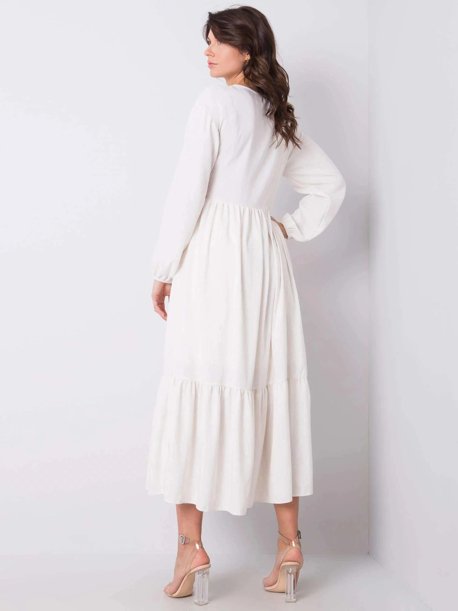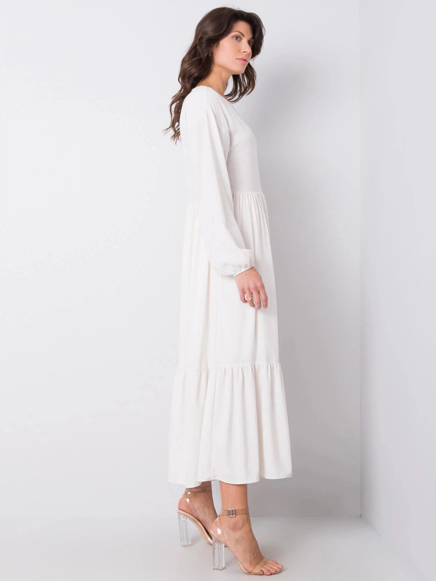 Rozměry šatů velikosti S měřené na plocho: šířka v podpaží - 45 cm, celková délka - 134 cm, délka rukávu - 56 cm