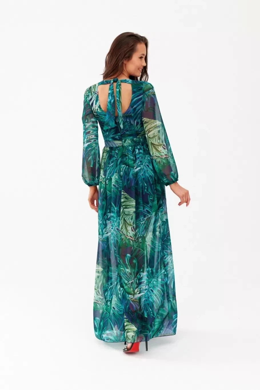 Dámské dlouhé letní šaty, v pase prošité, vzadu s rafinovaným výstřihem. Zapínání na zádech, skrytý zip. Podšité spodničkou do půlky stehen.