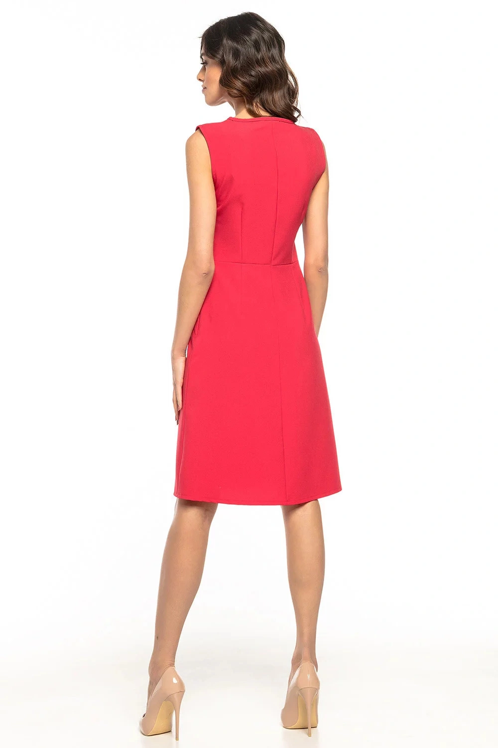 Dámské společenské šaty FOLD se sklady a páskem středně dlouhé červené - Červená - Numoco