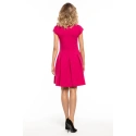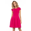 Dámské šaty ke kolenům, jednoduchého střihu, s krátkým rukávem, u krku kulatý výstřih. Materiálové s