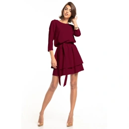 EMAMODA dámské krátké společenské šaty bordó - Bordó / S - EMAMODA