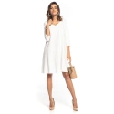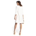 Trapézové šaty s 3/4 rukávy a špičatým výstřihem. Má pásek v barvě šatů s ozdobnou sponou, který po uvázání v pase vytváří druhou verzi šatů.