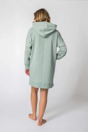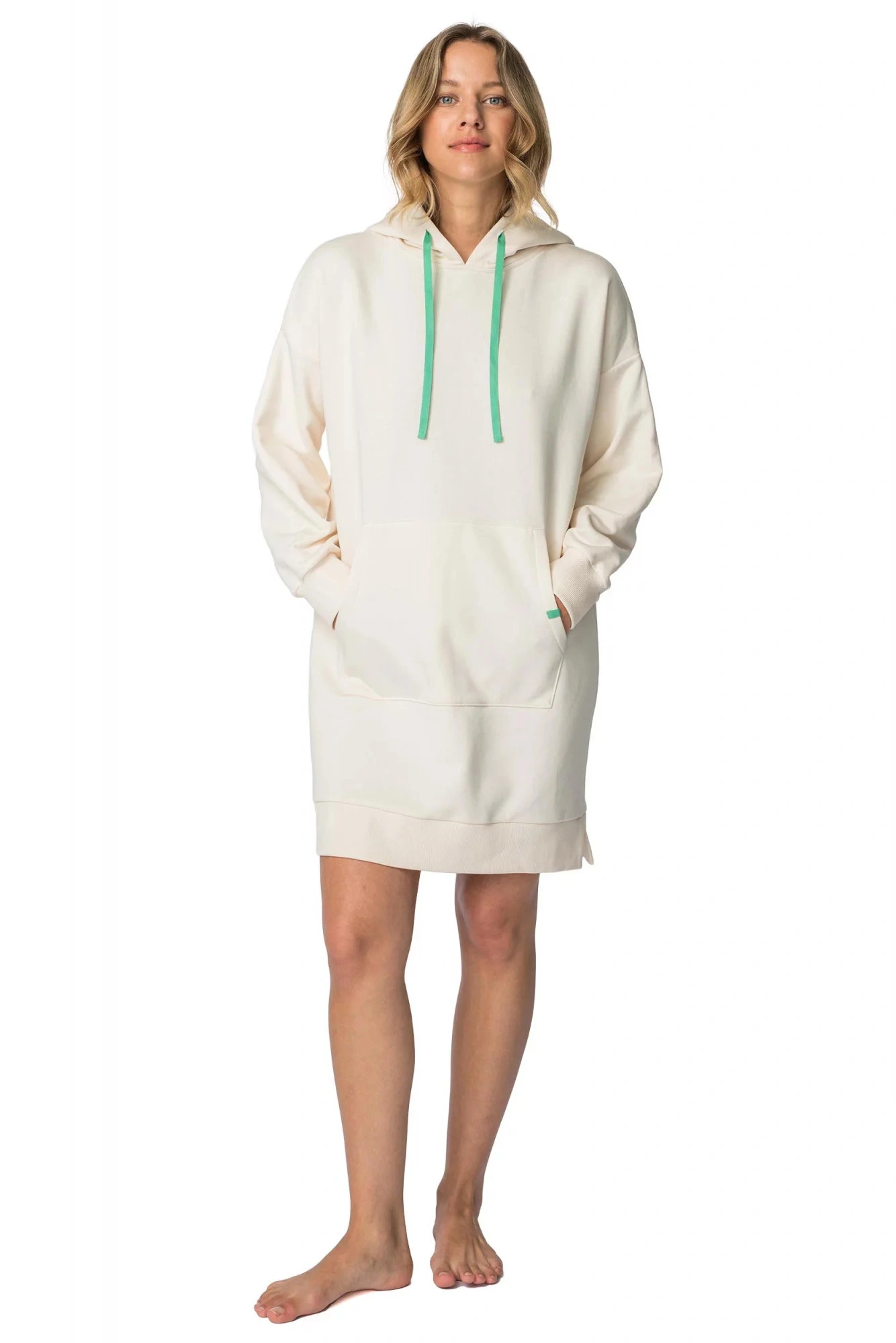 Tento oblíbený střih šatů s kapucí a klokaní kapsou volného střihu se hodí jak na doma, tak na ven.