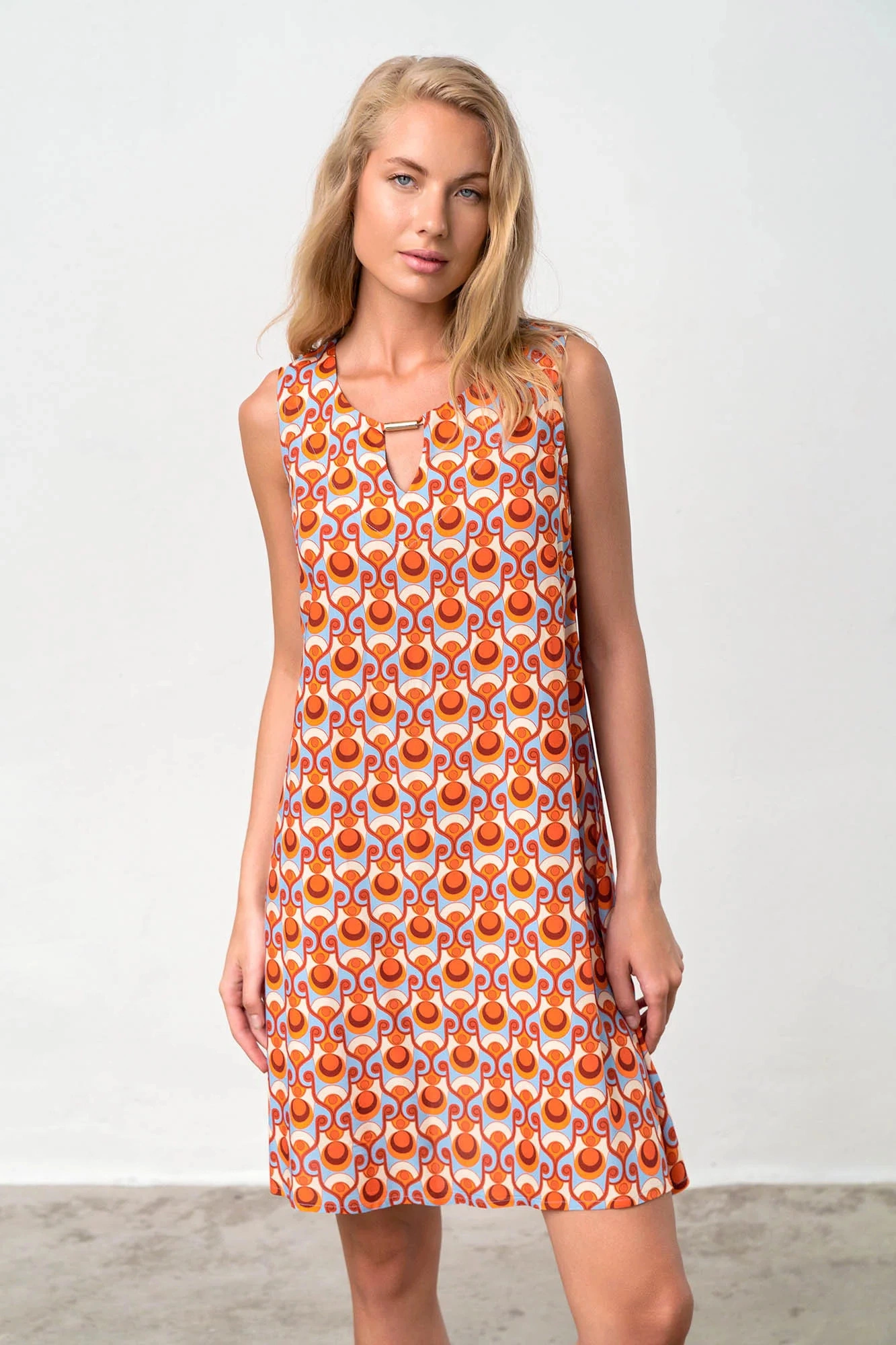 Popis Dámské šaty Twiggy 18518 Oranžová s modrou - Vamp