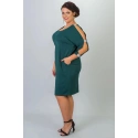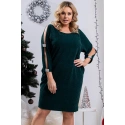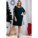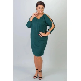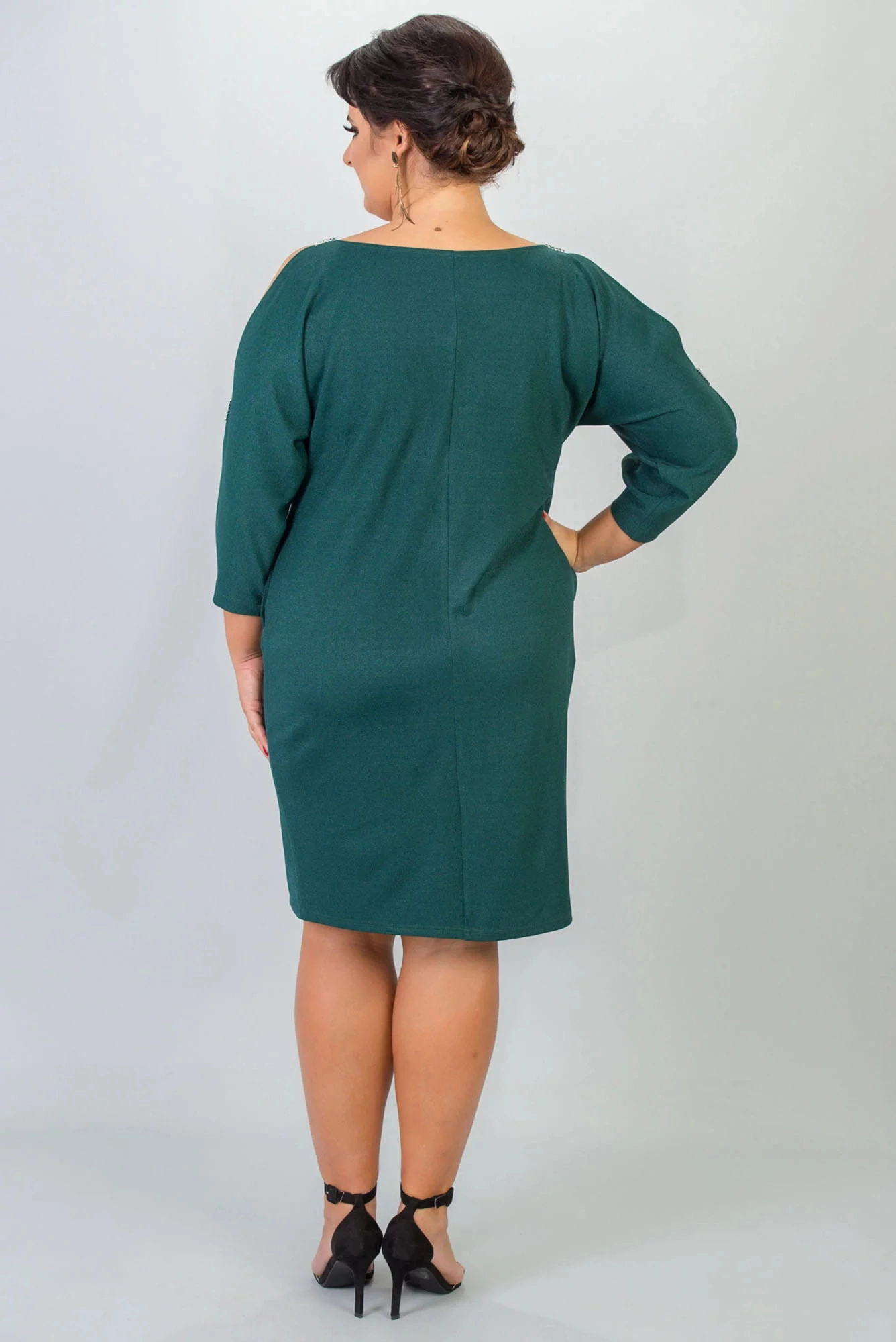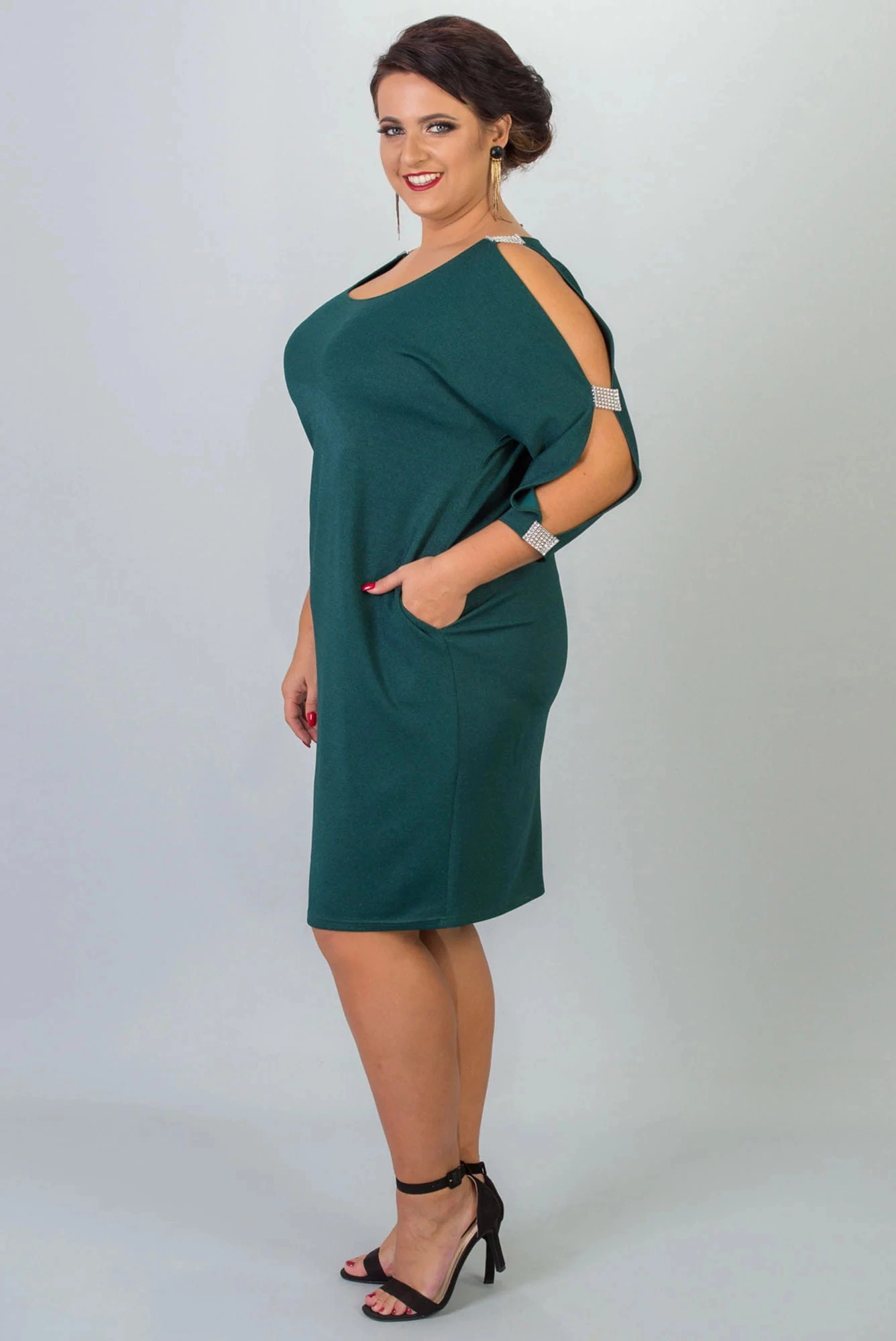 Dámské třpytivé zelené šaty s dlouhými prostřihanými rukávy s luxusními stříbrnými sponami.