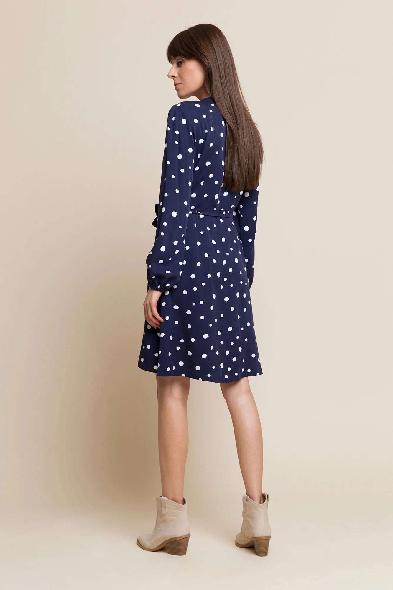 Wendy jsou: šaty ke kolenům obálkového střihu s dlouhými rukávy zakončenými gumičkou a páskem. Zvláštní výhodou tohoto modelu je zavazování, které umožňuje upravit obvod šatů, díky čemuž se krásně přizpůsobí tvaru postavy. Nejjarnější odstín amarantu s jemným potiskem, nebo klasická námořnická modř s bílými puntíky? Který z nich si vyberete letos na jaře?