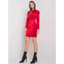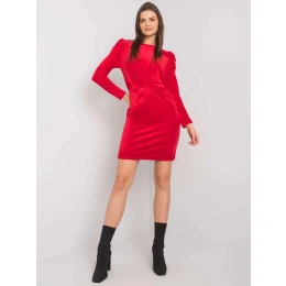 RUE PARIS Červené velurové šaty ve fitted střihu.