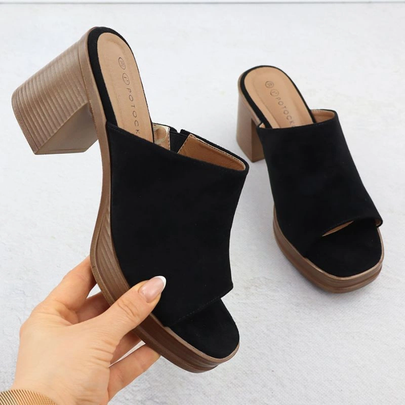 Mimořádně módní návrh žabek od značky Potocki v mimořádně pohodlné podobě. Žabky stojí na pohodlné platformě a stabilním jehlovém podpatku, což zaručuje dokonalé dotvoření letního dámského stylingu a poskytuje plný komfort chůze.