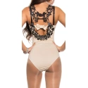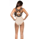 Dámské sexy body s háčkovanými ramínky a kamínky Béžová s černou 9172 - KouCla
