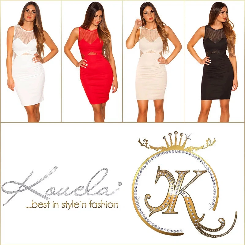 Dámské sexy šaty se síťovinou 18895 Béžová - KouCla Materiál složení: 95% polyester, 5% elastan