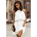 Vrchní část šatů se zavazuje za krkem - díky šňůrce můžete rozhodnout, jak dlouhé šaty budou. Malá prasklina na zádech a vazba na zátylku.
