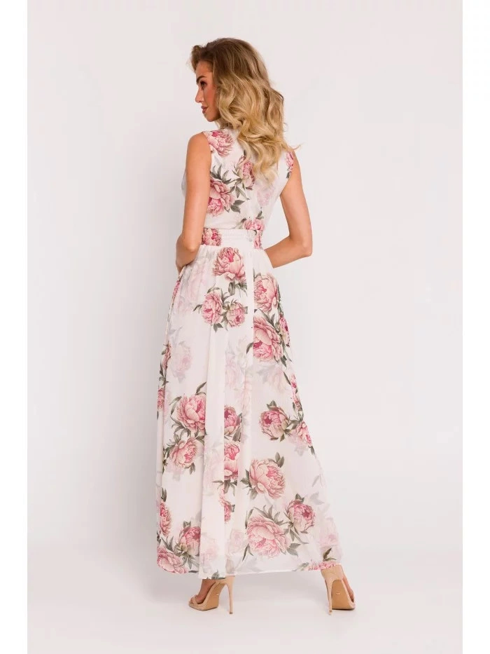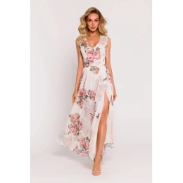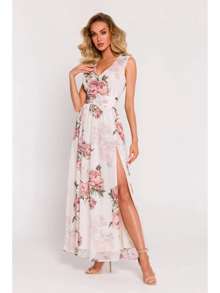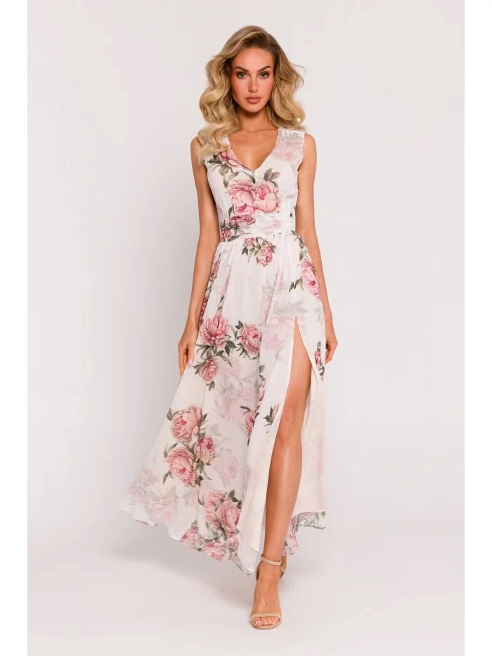 INFORMACE O PRODUKTU: tkaná šifonová tkanina maxi délka šifonové šaty přiléhavý střih s vysokým rozparkem vpředu bez rukávů s hlubokým výstřihem do V částečně elastický pas skrytý boční zip plně podšité naše modelka je vysoká 171 cm a nosí velikost S navrženo a vyrobeno v Polsku