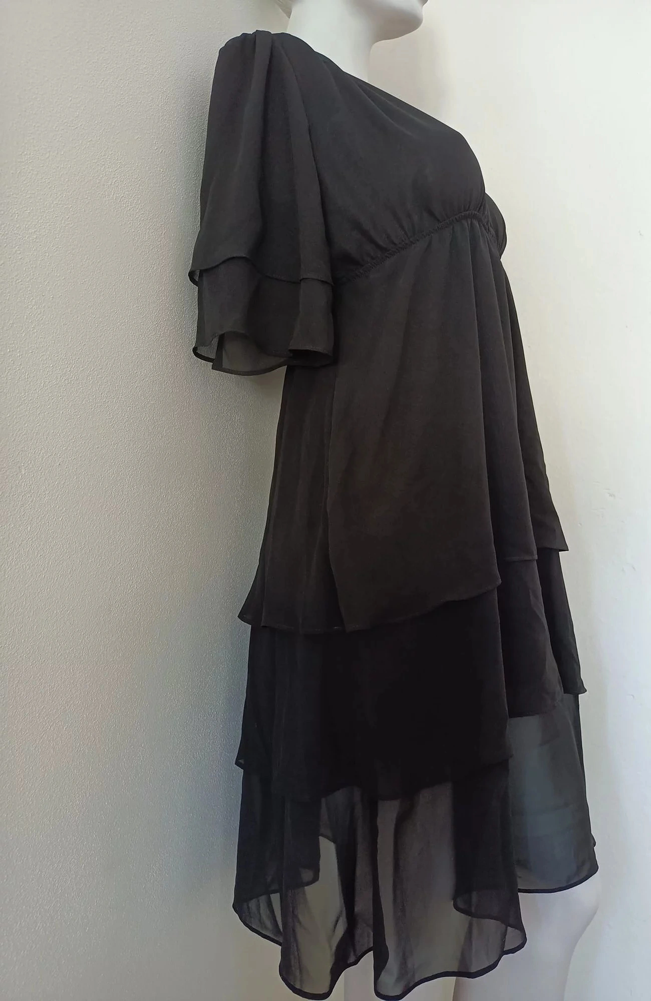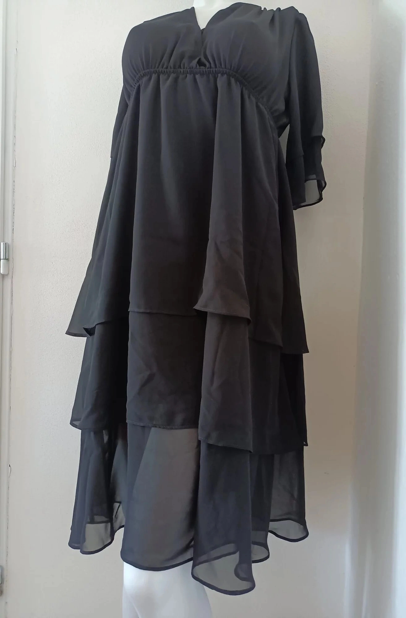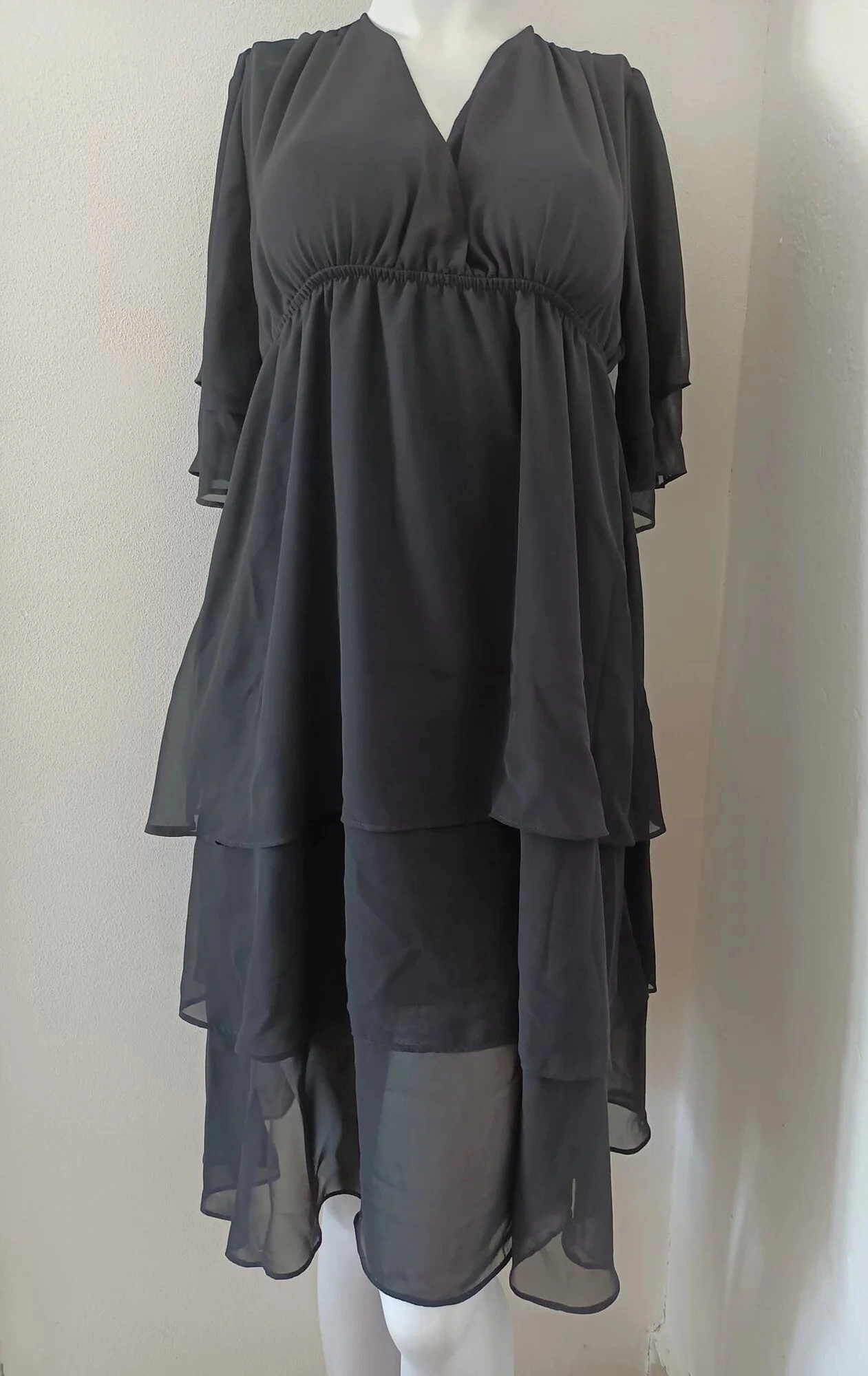 Dámské šifónové šaty s krátkým, zdvojeným rukávem. Výstřih až mezi prsa, co působí svůdně a elegantně.