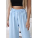 Široké viskózové kalhoty jsou jedinečným kouskem oblečení, který kombinuje pohodlí a eleganci. Tyto kalhoty, vyrobené z lehkého a vzdušného viskózového materiálu, zaručují nejen svobodu pohybu, ale také se budete cítit lehce a svěže po celý den. Široká nohavice dodává kalhotám charakteristický, volný střih, který je módní i pohodlný. Díky tomuto prvku vypadají kalhoty mimořádně stylově a působivě a dodává originalitu každému stylu. Univerzální design širokých kalhot je předurčuje pro různé příležitosti a styly. Můžete je nosit jak ke každodennímu ležérnímu outfitu, tak k elegantnějším soupravám na pracovní schůzky nebo večerní výlety. Široké viskózové kalhoty jsou perfektní volbou pro ženy, které oceňují pohodlí a styl. Díky univerzálnímu designu a kvalitnímu zpracování jsou tyto kalhoty nenahraditelným kouskem šatníku, který skvěle doplní každou kolekci oblečení. Velikost je univerzální a bude vhodná pro ženy, které nosí velikost S, M nebo L.