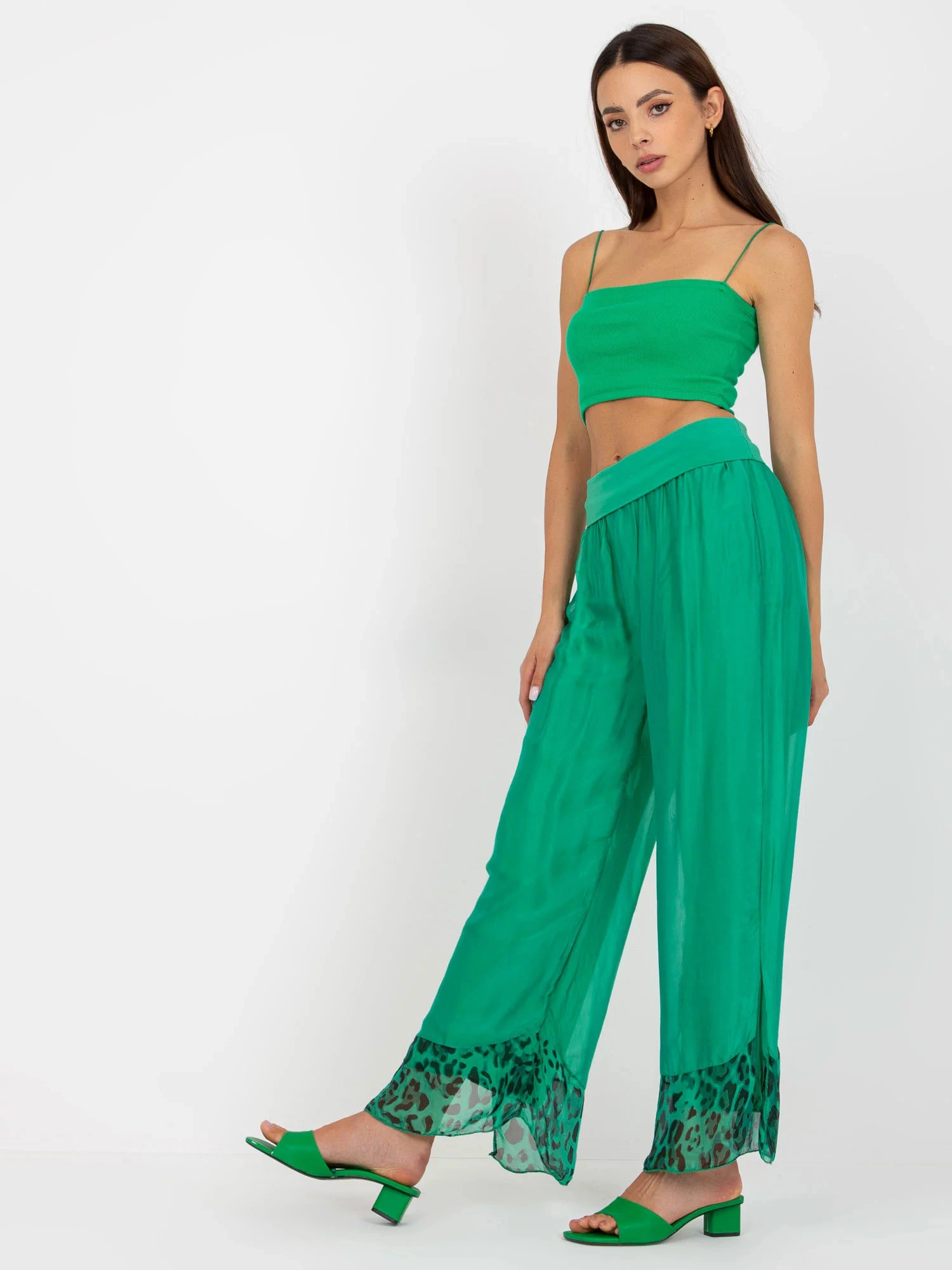 Rozměry kalhot jedné velikosti měřené na plocho: šířka v pase - 36 cm, výška v pase - 44 cm, celková délka - 109 cm.