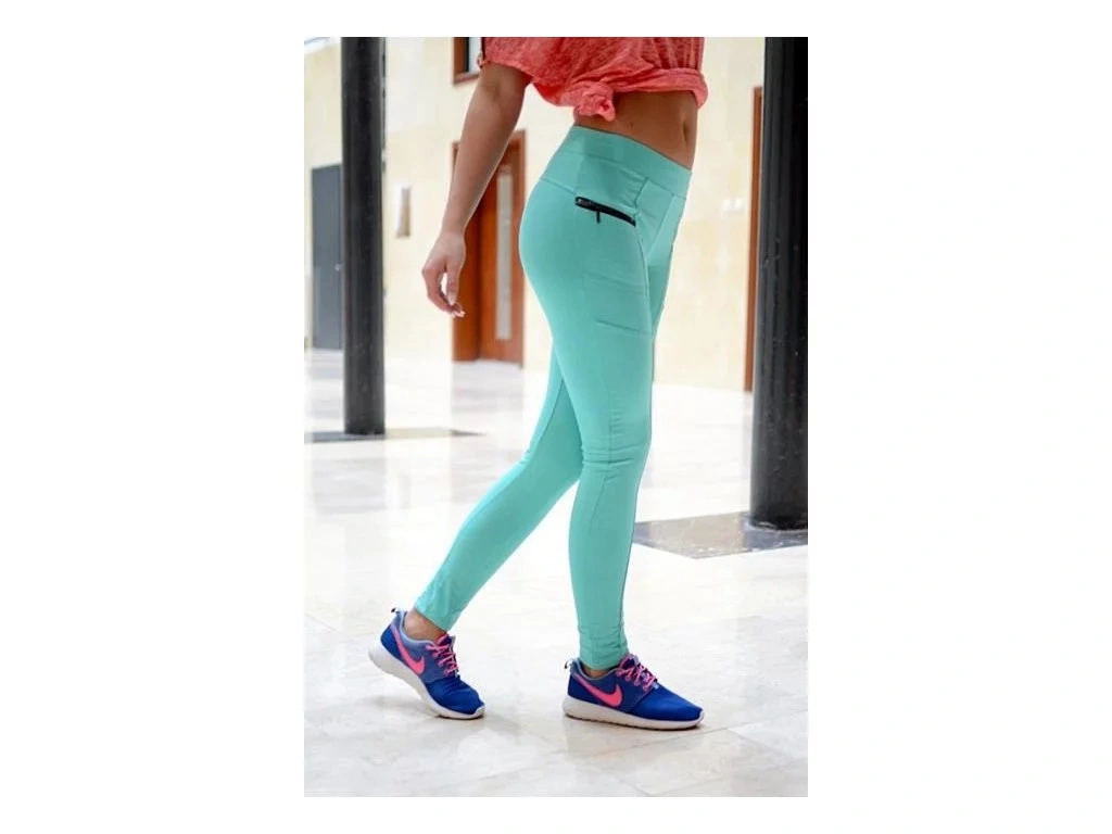 Dámské slim sportovní kalhoty s dekorativními zipy v tyrkysové barvě. Vhodné zejména ke sportovním účelům. Kalhoty jsou vyrobeny z velice příjemného materiálu.