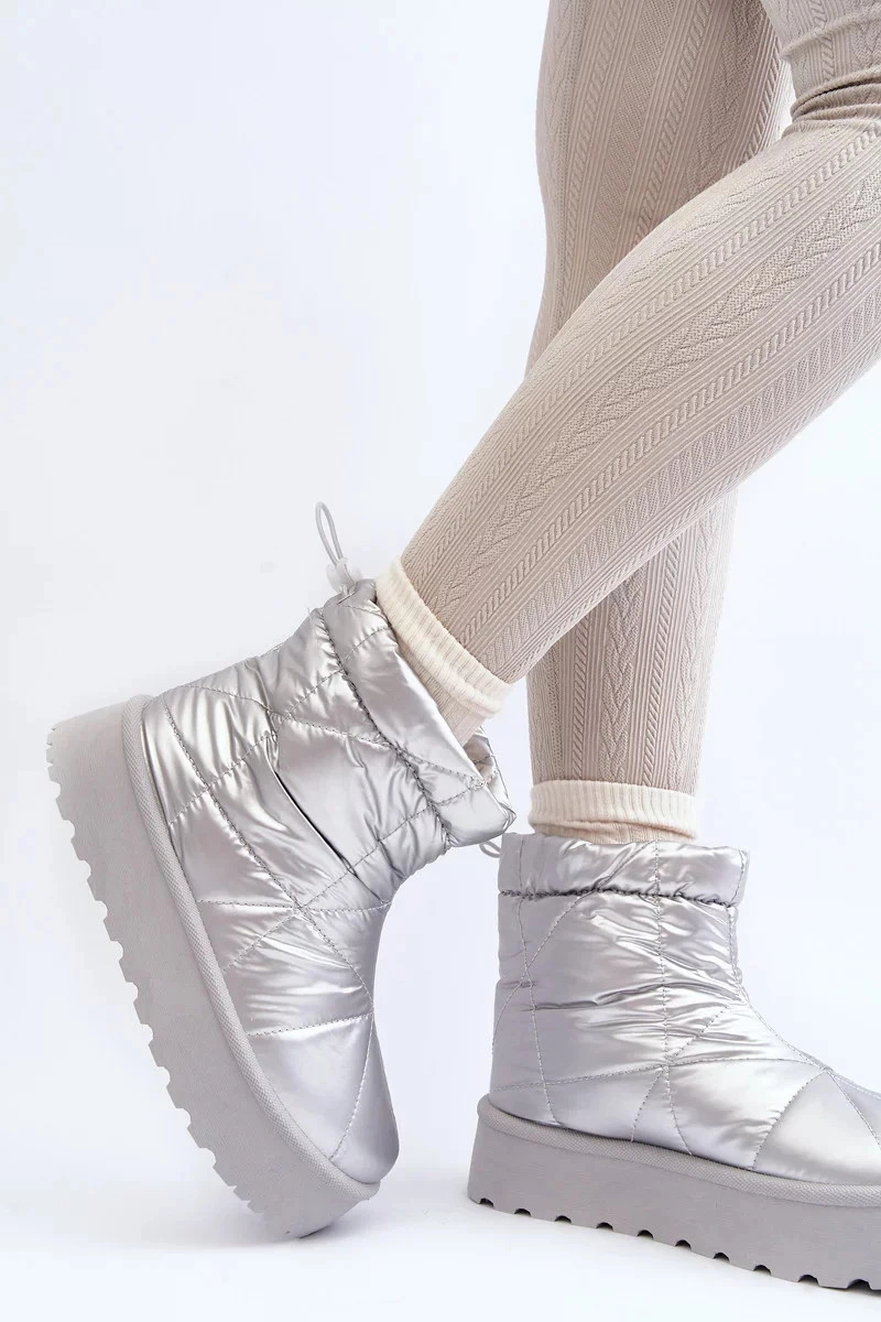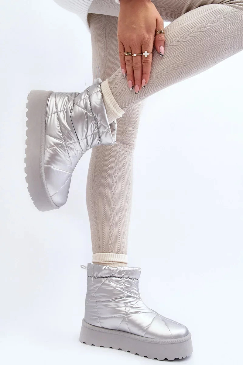 Dámské sněhule vyrobené z materiálů, které účinně chrání před chladem. Namontováno na masivní platformě z pryžového materiálu. Svršek zdobí četné prošívání. Nazouvací model. Zaoblené prsty. Uvnitř je zateplená hustou kožešinou. V horní části svršku je stahovací šňůrka. Navíc je zesílená pata. Rozhodně byste je měli mít!Při výběru velikosti se řiďte tabulkou velikostí.