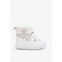 Dámské sněhule se svrškem v délce nad kotníky. Vyrobeny z kombinace textilního materiálu a ekologické kůže. Osazeny na silné platformě, která dokonale izoluje od chladné země. Nazouvací model s lesklými tkaničkami. Zateplené kožíškem. Ideální pro chladné dny! Rozhodně byste si je měli pořídit!