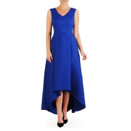Šaty s vypasovaným horním dílem, v pase vykrojené. Šaty na podšívce, zapínání na zip. Dole asymetrické, vzadu delší a vpředu kratší. Šaty mají kapsy. Ideální pro mnoho příležitostí.