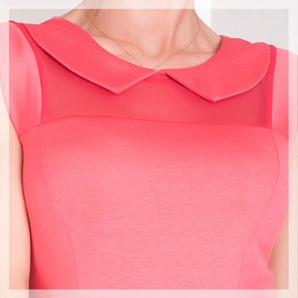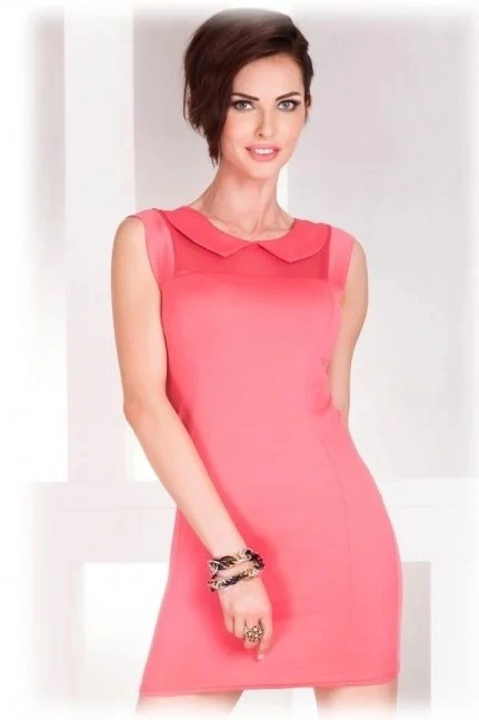 Tyto šaty se vyrábějí v EU. Dámské šaty do společnosti s límečkem a šifonovým síťovaným živůtkem.
