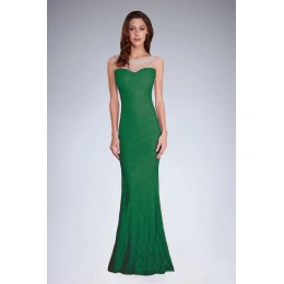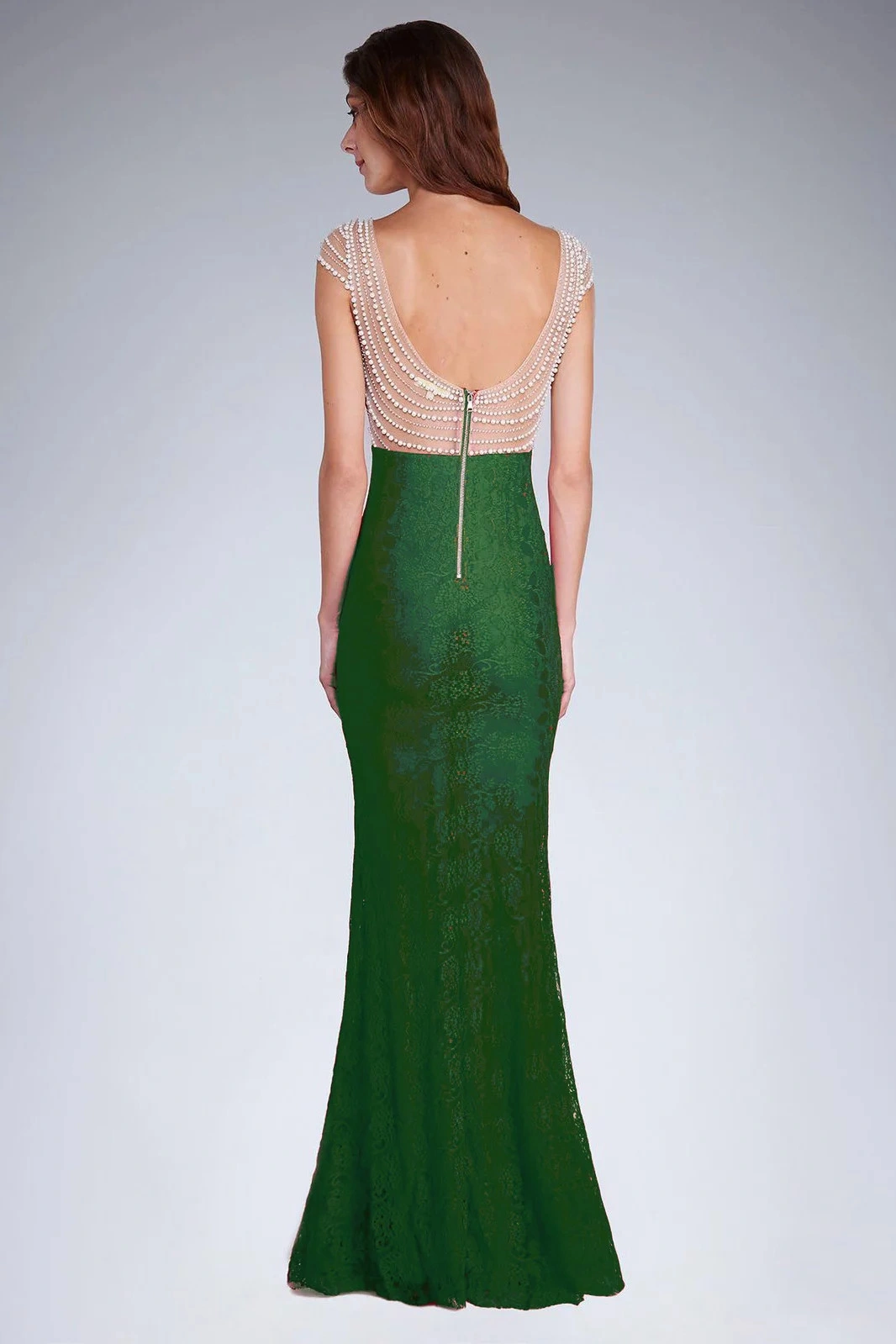 Dámské společenské šaty SOKY SOKA s perličkami a krajkou dlouhé zelené