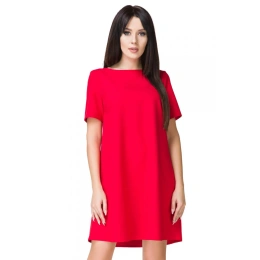 Elegantní krátké trapézové šaty širokého střihu. Rovný výstřih, krátké rukávy. Dno je jemně zaoblené. Lehké a vzdušné šaty, ideální pro letní dny. Díky svému univerzálnímu charakteru se hodí pro pracovní i rodinné akce. Ideální pro každý typ postavy. Doplňte je svými oblíbenými doplňky a užívejte si pohodlné každodenní i sváteční nošení.