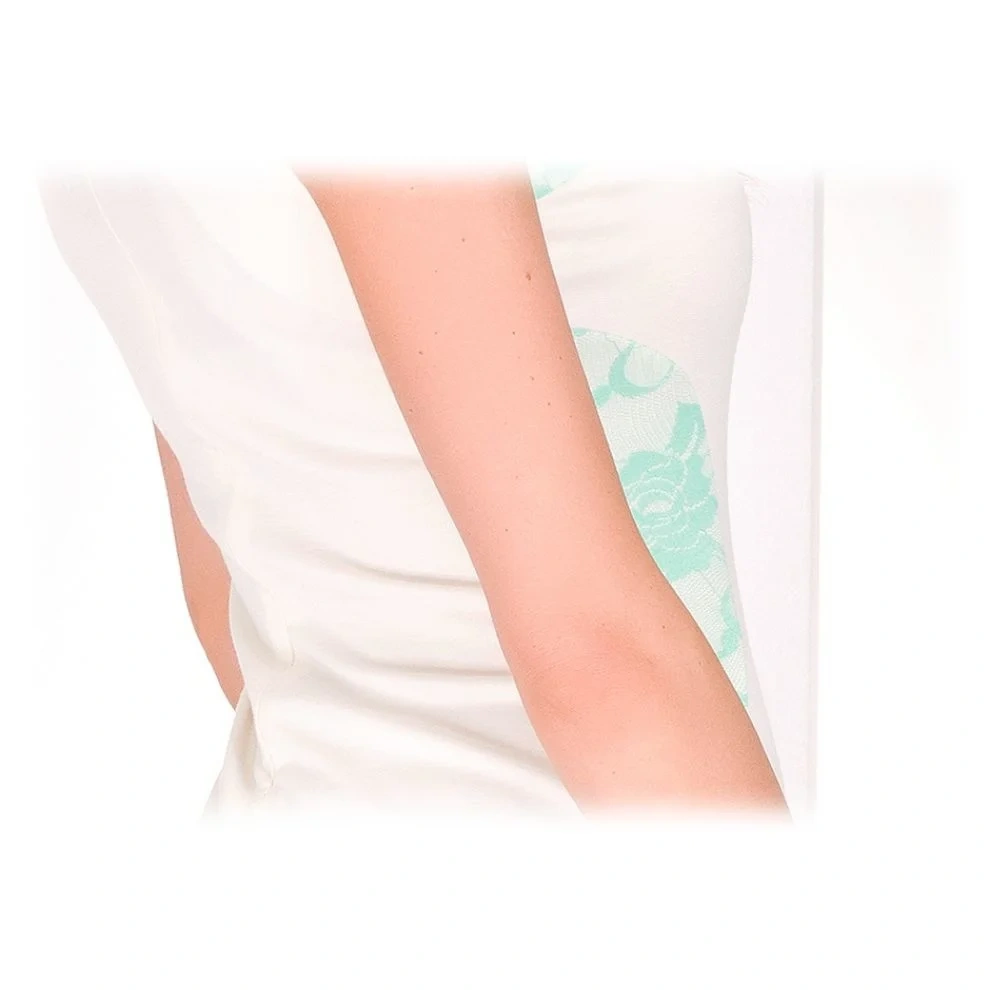 zajímavé a elegantní dámské šaty v moderním společenském stylu, zdobené zelenými krajkovými doplňky v oblasti ramen a pasu, viz obrázky. Šaty jsou vhodné pro různé společenské příležitosti.