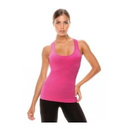 Bezešvé dámské sportovní tílko s velmi dobrým podpůrným, stabilizačním a vykreslujícím efektem díky vnitřnímu vplétanému topu. Americký střih a široká ramínka ponechávají maximální volnost ramenům.Technický úplet zaručuje prodyšnost a suchou pokožku, přispívá k odvodu potu a zanechává pocit lehosti a svěžesti.