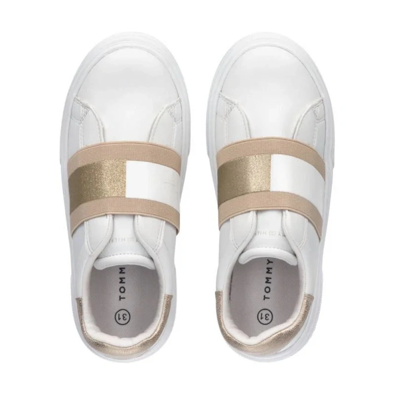 Sportovní obuv střihu pod kotníkem se svrškem zdobeným třpytivou vlajkou a lesklou vložkou na zadní straně představuje snadný způsob, jak vytvořit okouzlující vzhled.