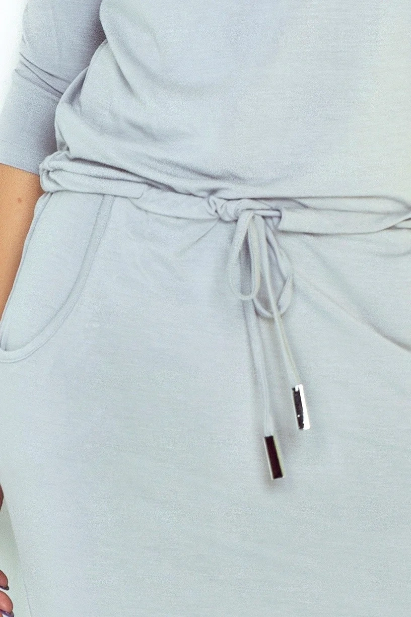 Dámské letní a sportovní šaty v moderním stylu, vyrobené z elastického materiálu v netopýřím střihu - batwings. Šaty jsou v přední partii vybaveny kapsami, šaty je možné zavázat v pase, díky tkanici umístěné v tunýlku. Moderní a velmi pohodlné šaty, které můžete nosit ve volném čase, na doma nebo na procházku, ale i na cestu do města. Moderní a volný střih, příjemný materiál a možnost šaty aranžovat (podkasat, apod.), díky zavazovací tkanici. Materiál, ze kterého jsou šaty vyrobeny je příjemný na omak. Kvalitní dámské šaty. Dámské značkové oblečení vyrobené pro EU.